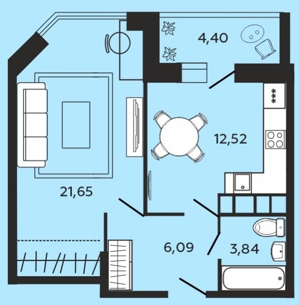 - есть возможность зонирования жилой комнаты;