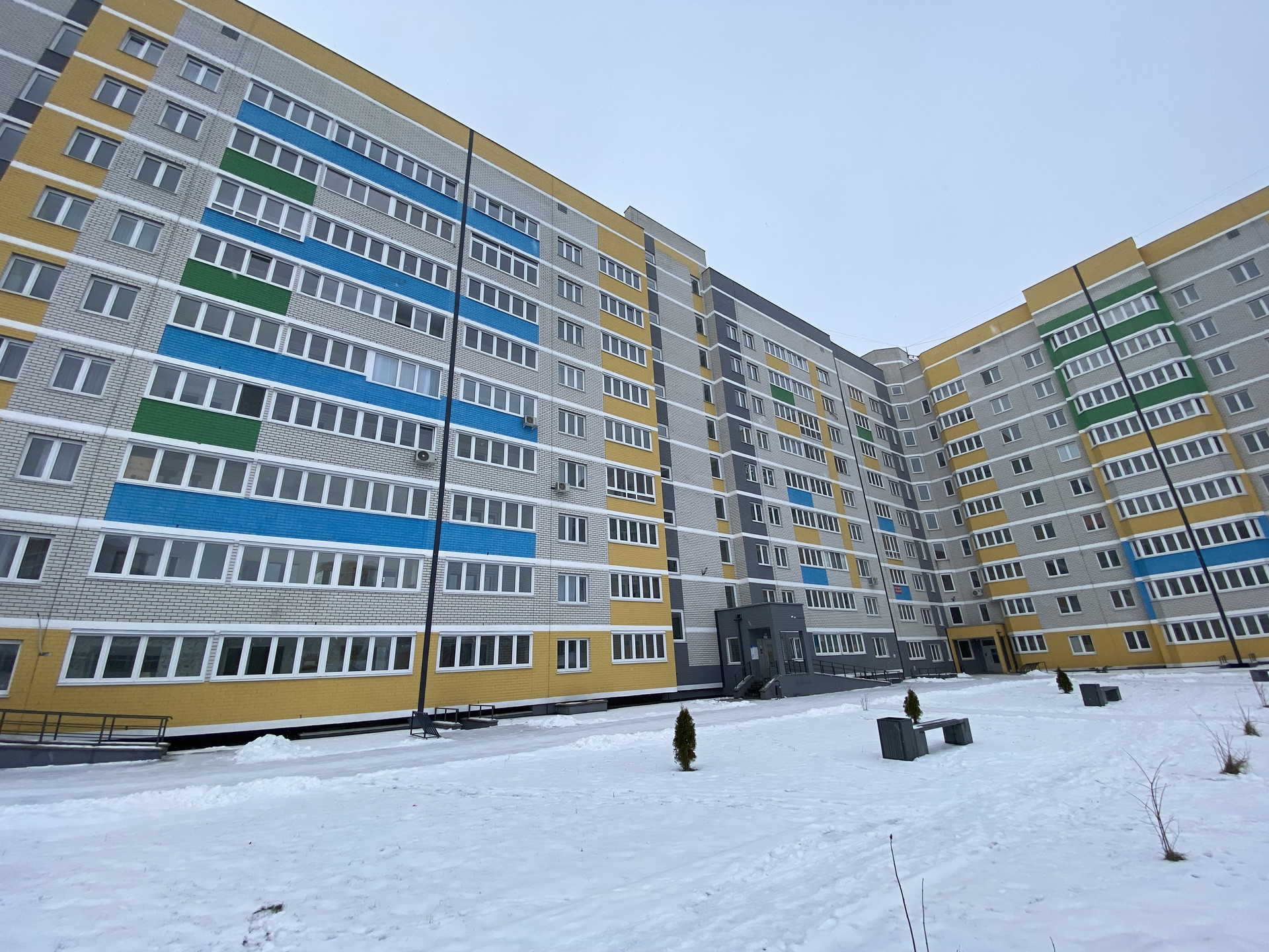Во дворе оборудованные: детская площадка, спортивная площадка, парковка для автомобилей.