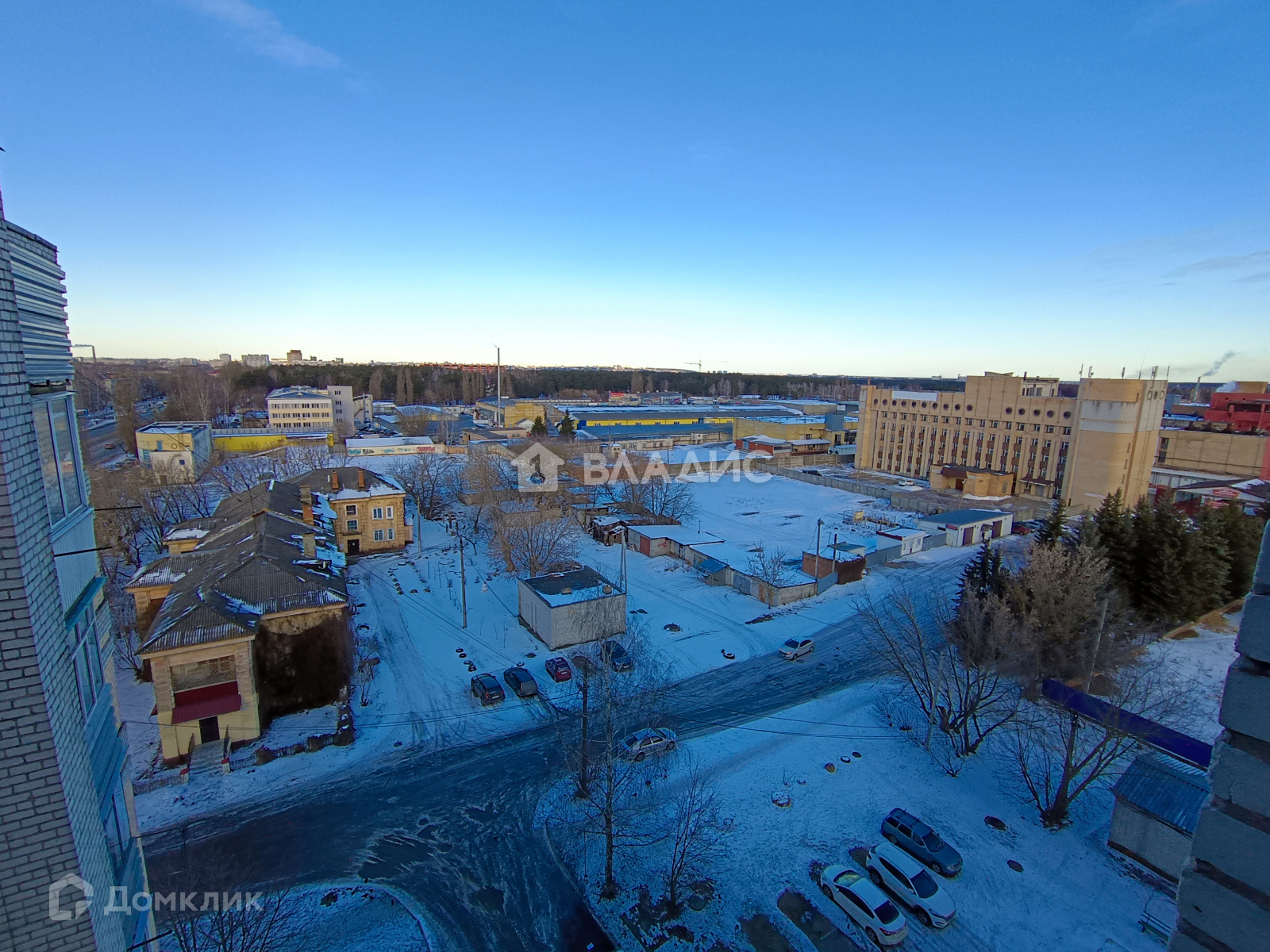 Живописный вид с лоджии на город.