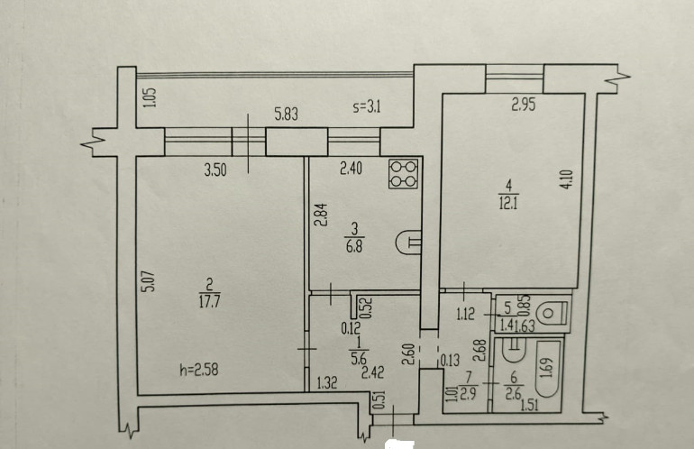 Площадь кухни 7 м2