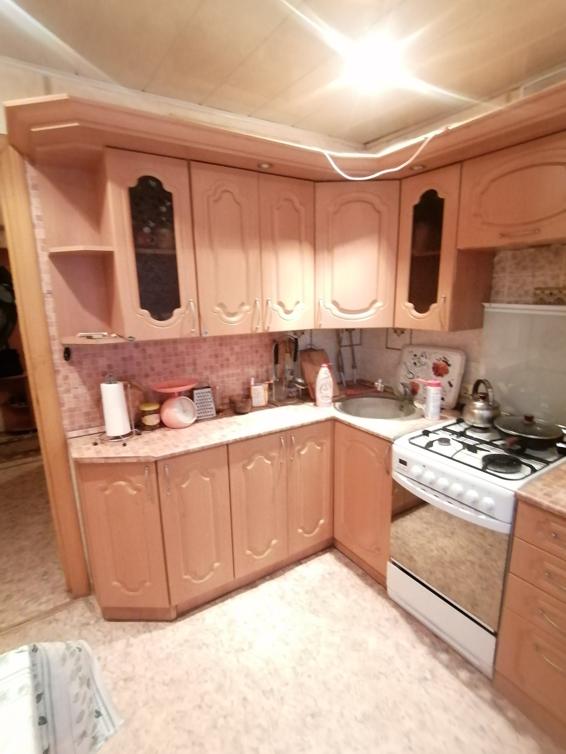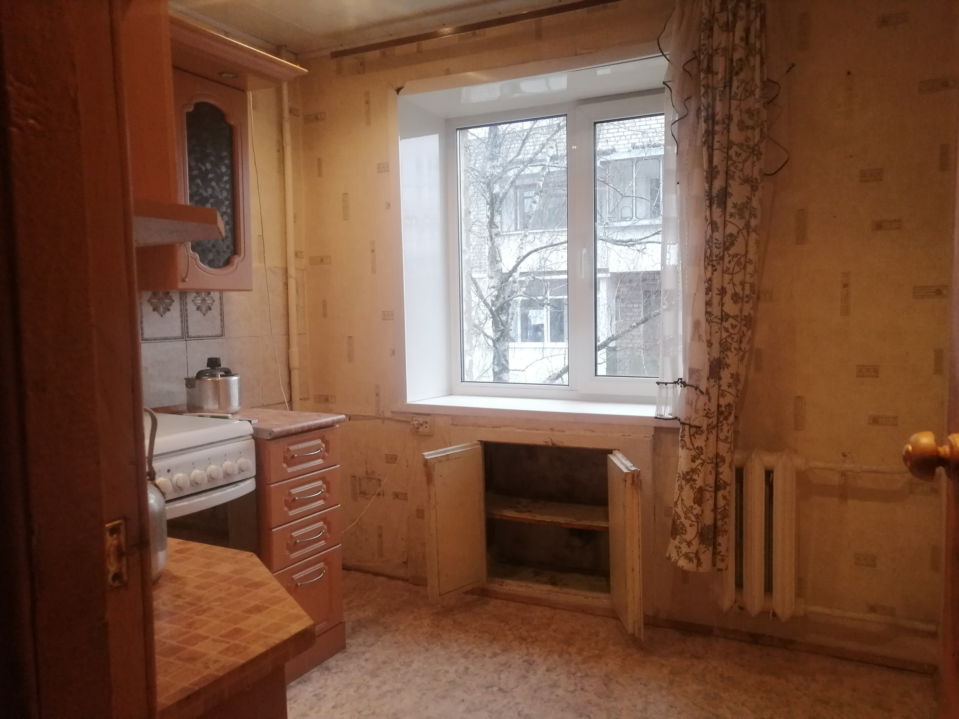 Есть 2 глубокие кладовки.Новая газовая плита, духовка электрическая. Кухонный гарнитур и прихожая остаются.