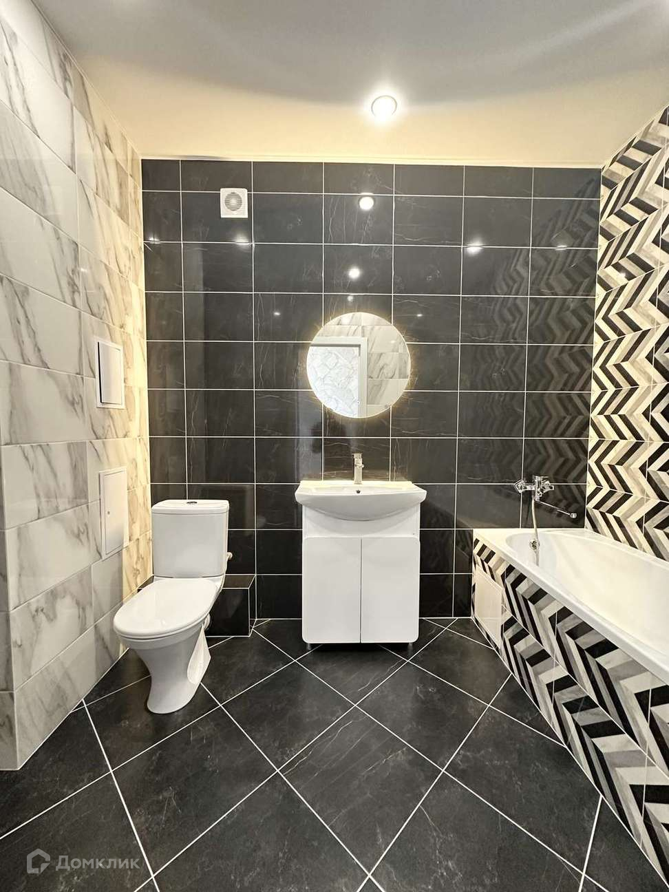 С/у в кафеле с новой сантехникой