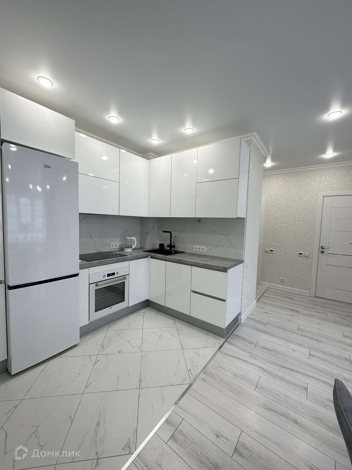 дорогой кухонный гарнитур со всей необходимой встроенной техникой (индукционная варочная поверхность,духовка,посудомоечная машина,микроволновка, холодильник)