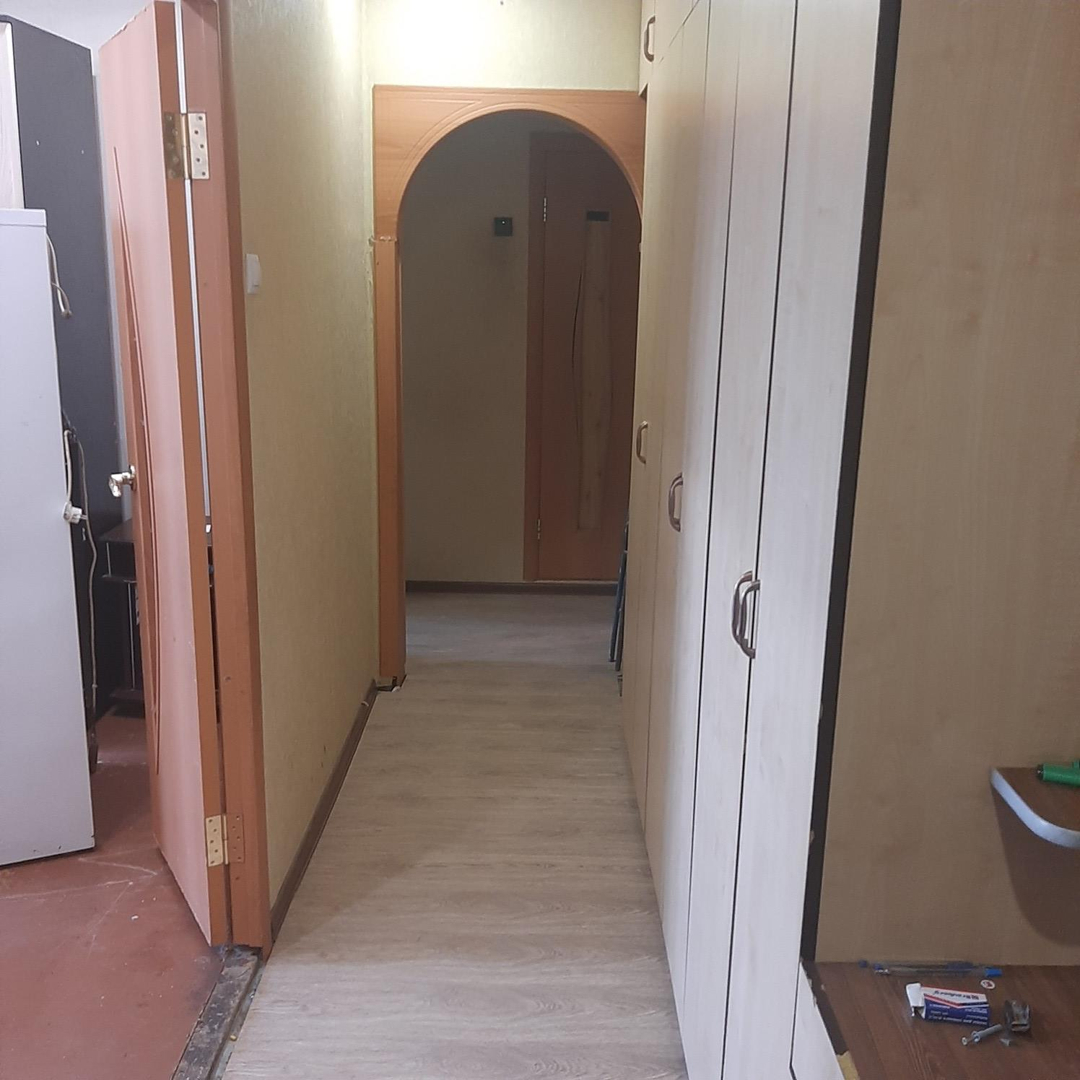 Окна ПВХ везде, натяжные потолки , заменены полы за исключением одной комнаты.