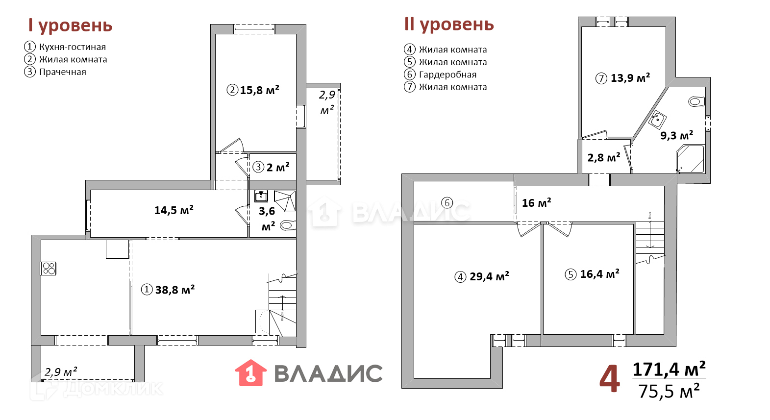Общая площадь 171.4 м2