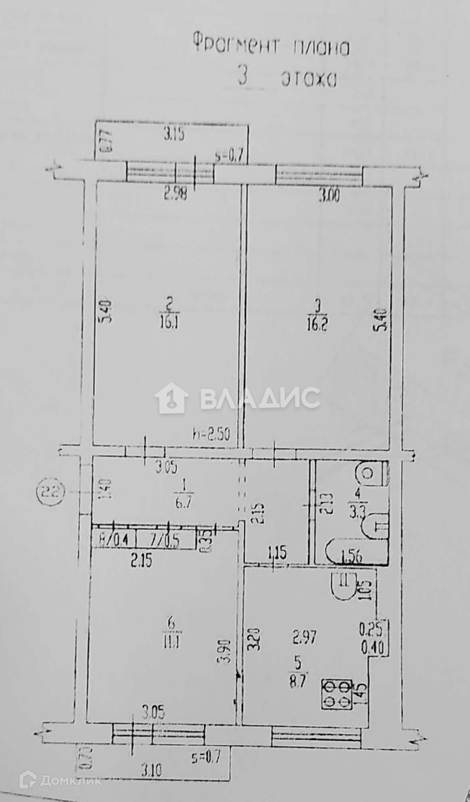Высота потолков 2.5 м