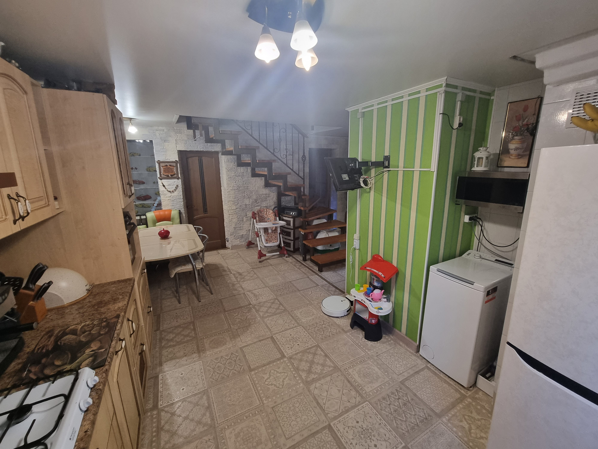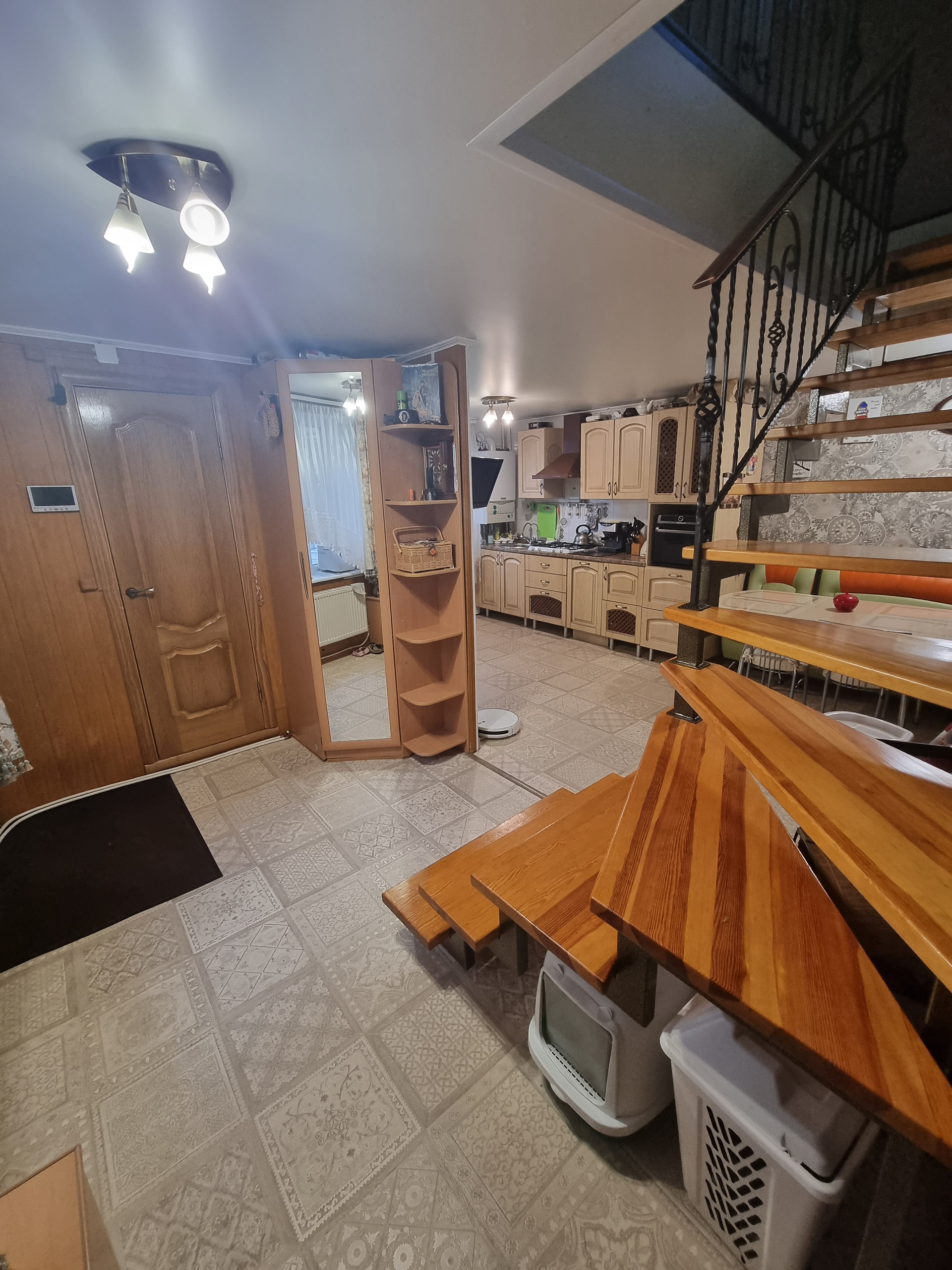 Продаëтся квартира с 2-я этажами, в 6 квартирном доме, в частном секторе.  Первый этаж: кухня-  21,8 м², 1 комната- 11,5 м² , 2 комната+ гардеробная- 13,7 м², санузел совмещённый- 2,5 м² , есть подполье.  Второй этаж: спальня- 23,5  м² гостинная- 18.9 м² , лоджия- 5,30 м². Высота потолков-2,7 м. Общая площадь- 95,4м².Жилая площадь - 67,6м² . Собственников- 3. Центральная канализация и водоснабжение, отдельный ввод в дом. Газоснабжение отдельный ввод в дом. Отопление- двухконтурный котел( горячая вода+ отопление) . Подключён интернет " Дом.ру". Выполнен современный ремонт. Мебель остаëтся частично. Индивидуальное парковочное место для автомобиля!!! Хорошие соседи!