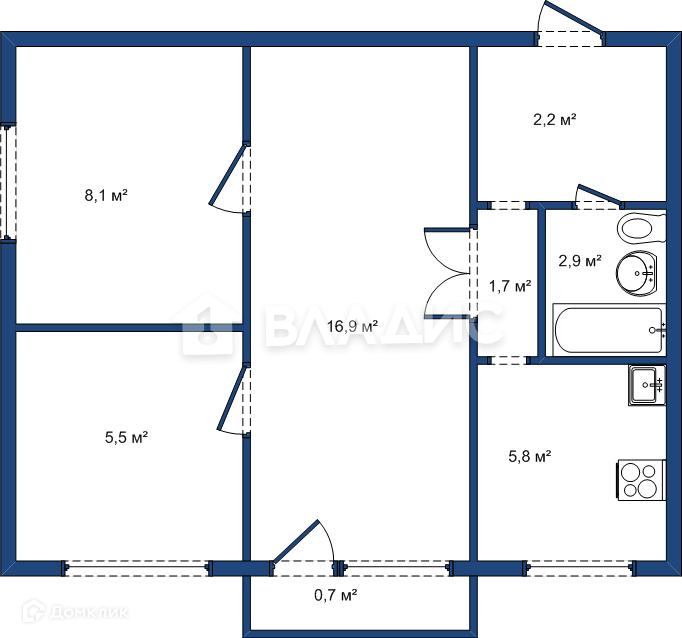 Общая площадь 43.1 м2