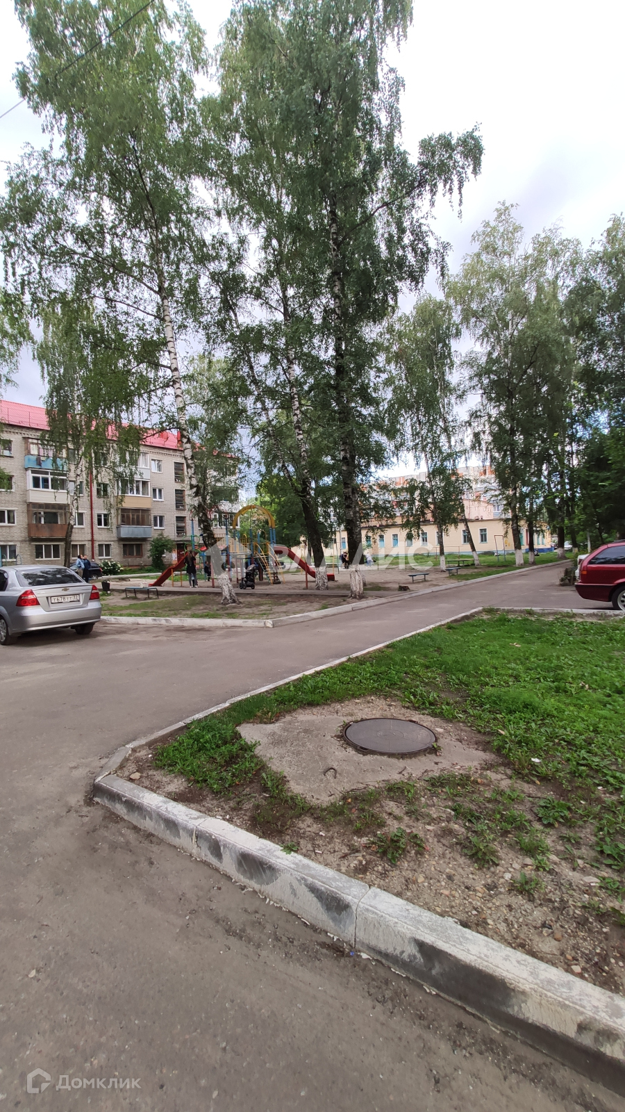 Зелёный благоустроенный двор, для детей детская площадка.