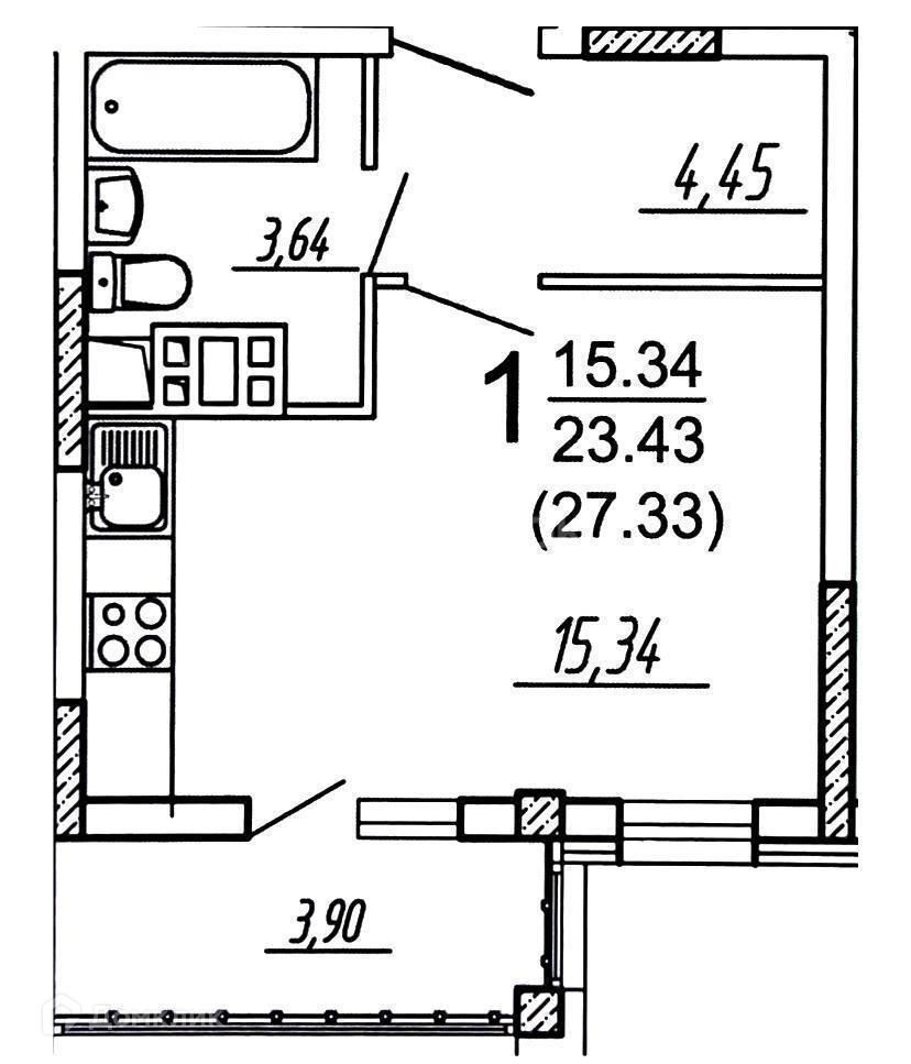 Общая площадь 27 м2