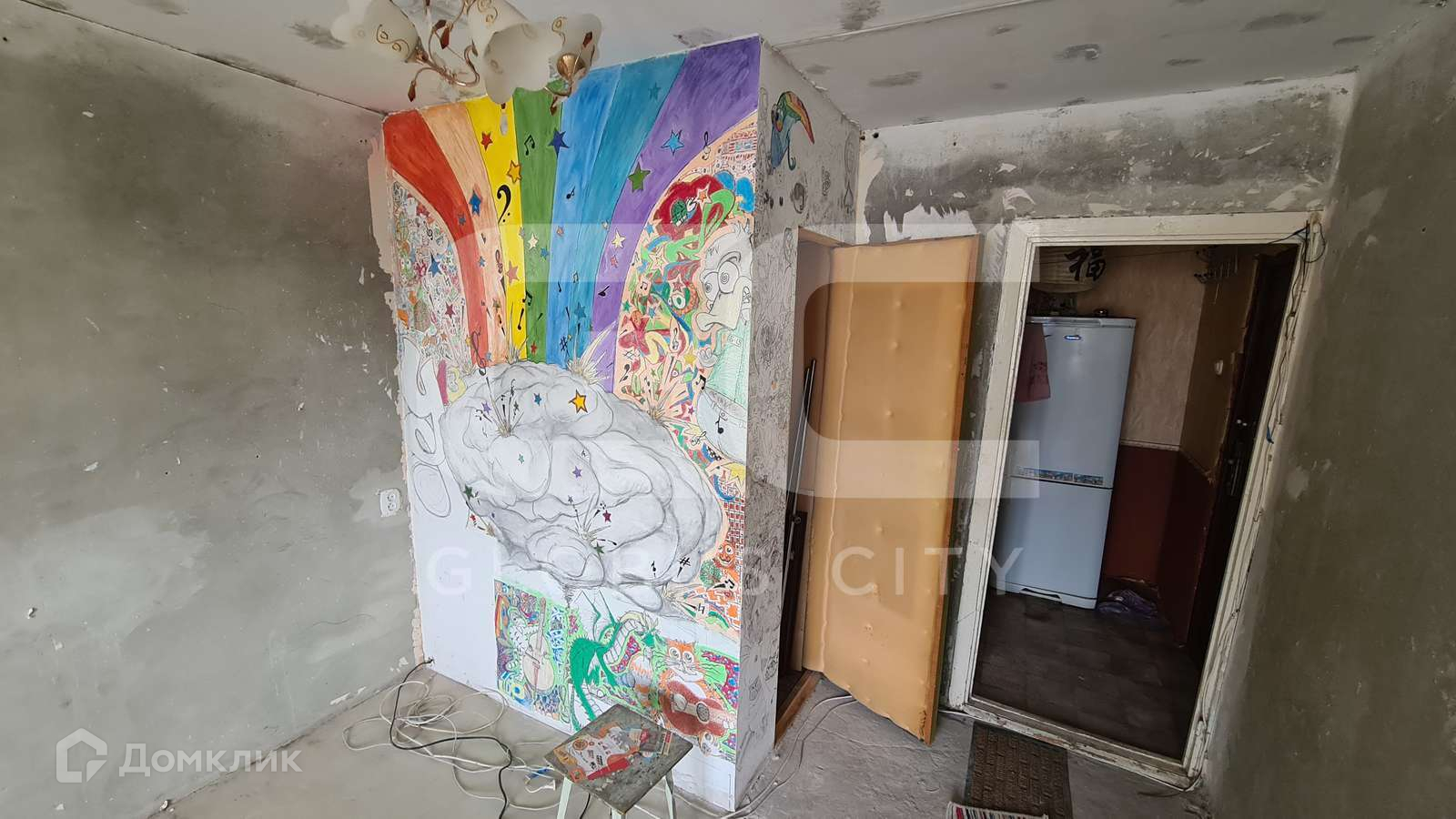 Жилая комната требует косметического ремонта.