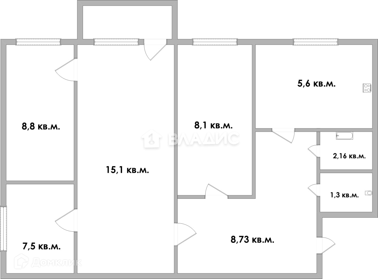 Планировка квартиры, позволяет объединить две комнаты в одну, тем самым мы получаем комнату с двумя окнами.