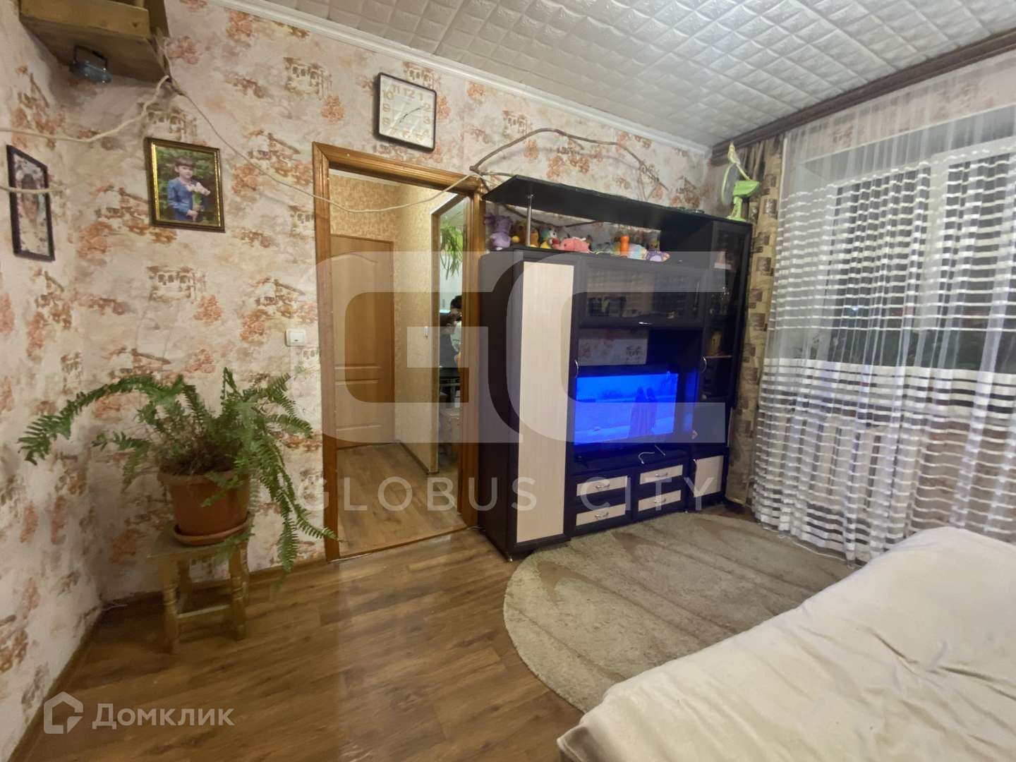 На полу линолеум, стены оклеяны обоями.