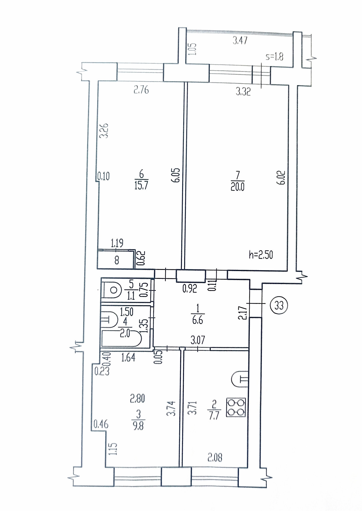 Высота потолков 2.5 м