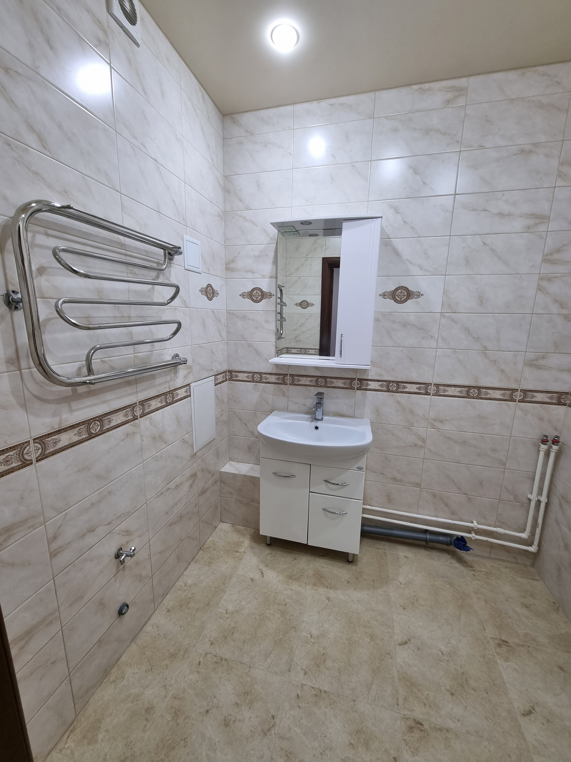 Тёплый пол в прихожей, на кухне, в ванной комнате;