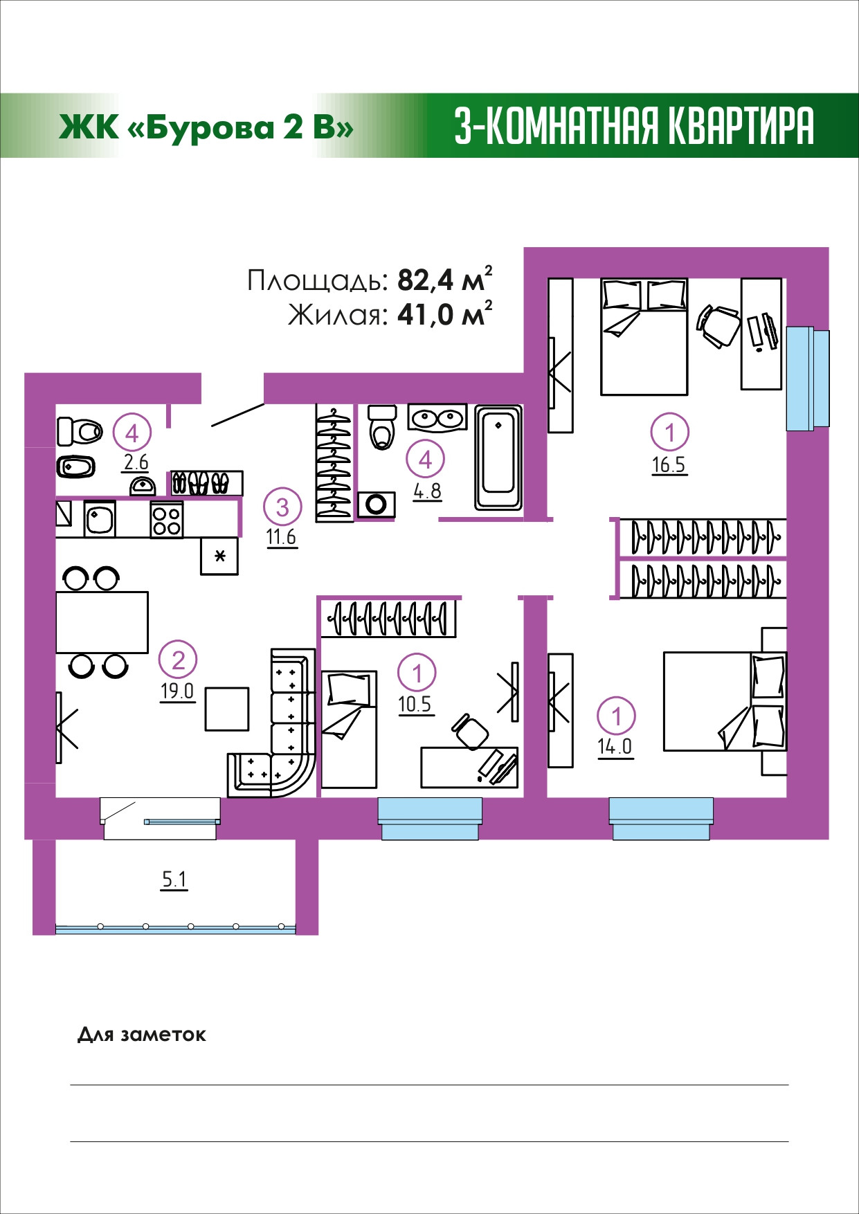 Кстати о комфорте.                                                                                                              В ЖК «Бурова 2 В» закрытая территория с ландшафтным дизайном, детскими и спортивными площадками. Автопарковка на 60 мест и видеонаблюдение по периметру. Безбарьерный вход в подъезд. Отделка мест общего пользования класса бизнес+!  В квартире просторная кухня-гостиная, два с/у, лоджия с панорамным остеклением и возможностью устройства рабочей зоны.