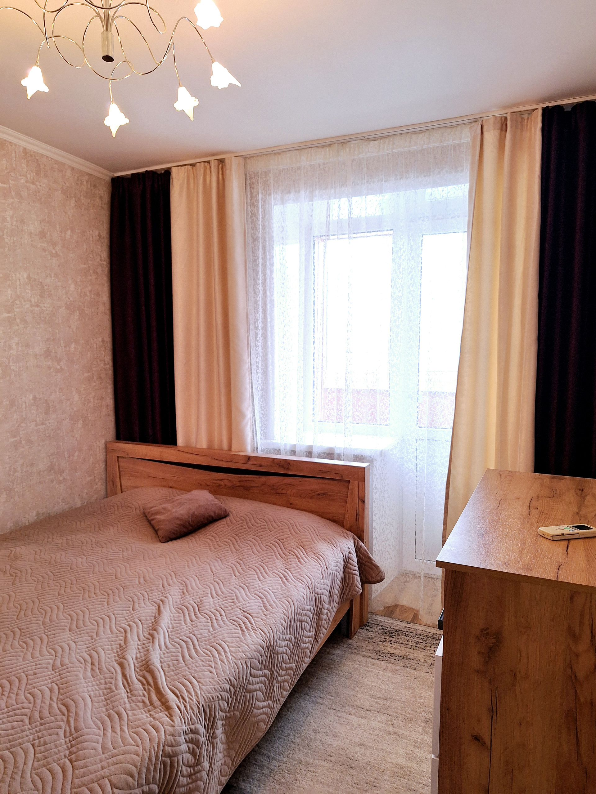 Остаётся встроенная кухня с техникой,вместительный шкаф-гардероб,кондиционер.
