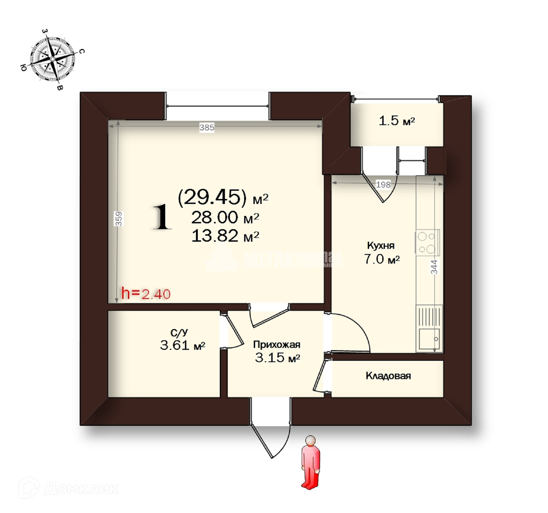 Общая площадь 28 м2