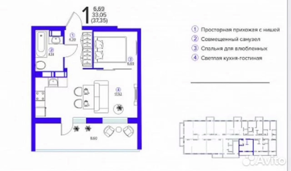 Общая площадь 37 м2