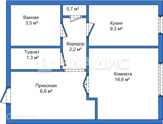Жилая площадь 16.6 м2
