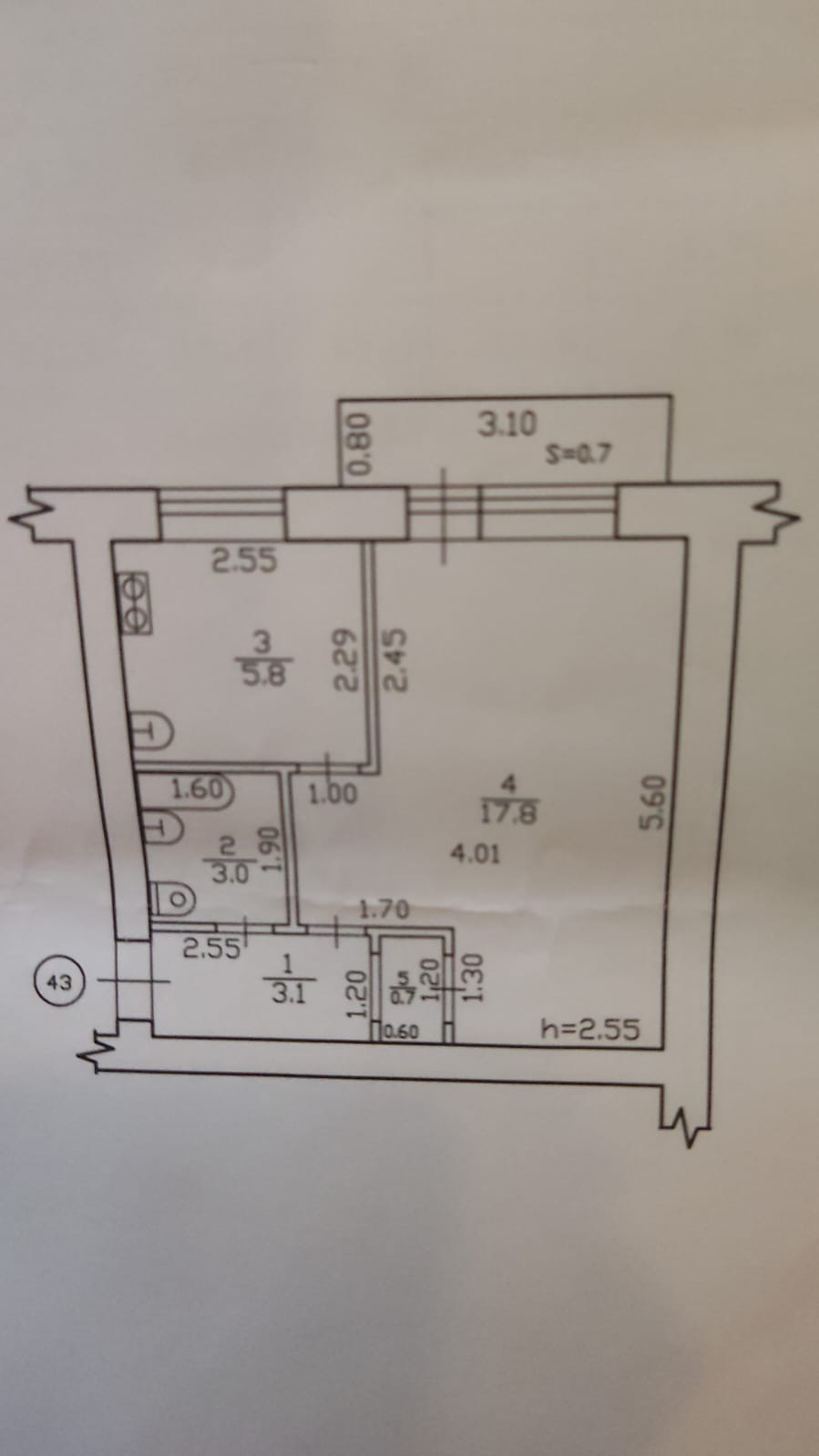 Балкон, лоджия 1 балкон