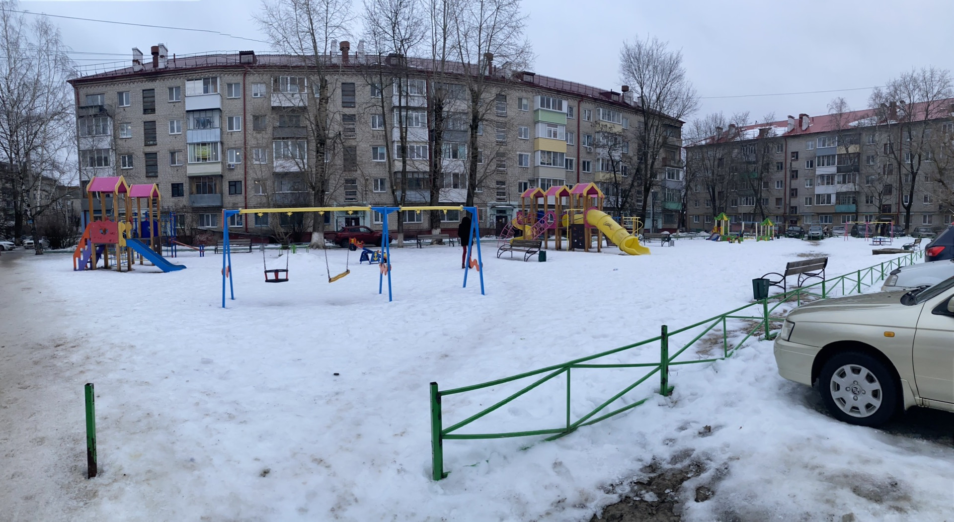 Во дворе дома есть: детская площадка ( два комплекса с горками, качели), открытый двор, парковка .
