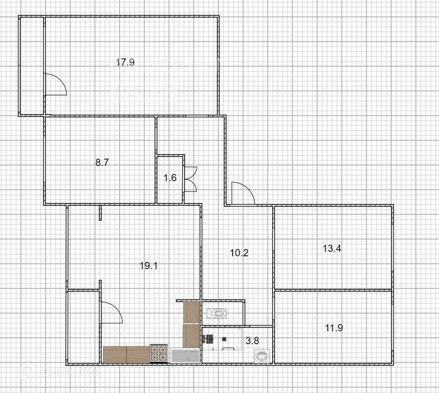 Площадь кухни 19.1 м2