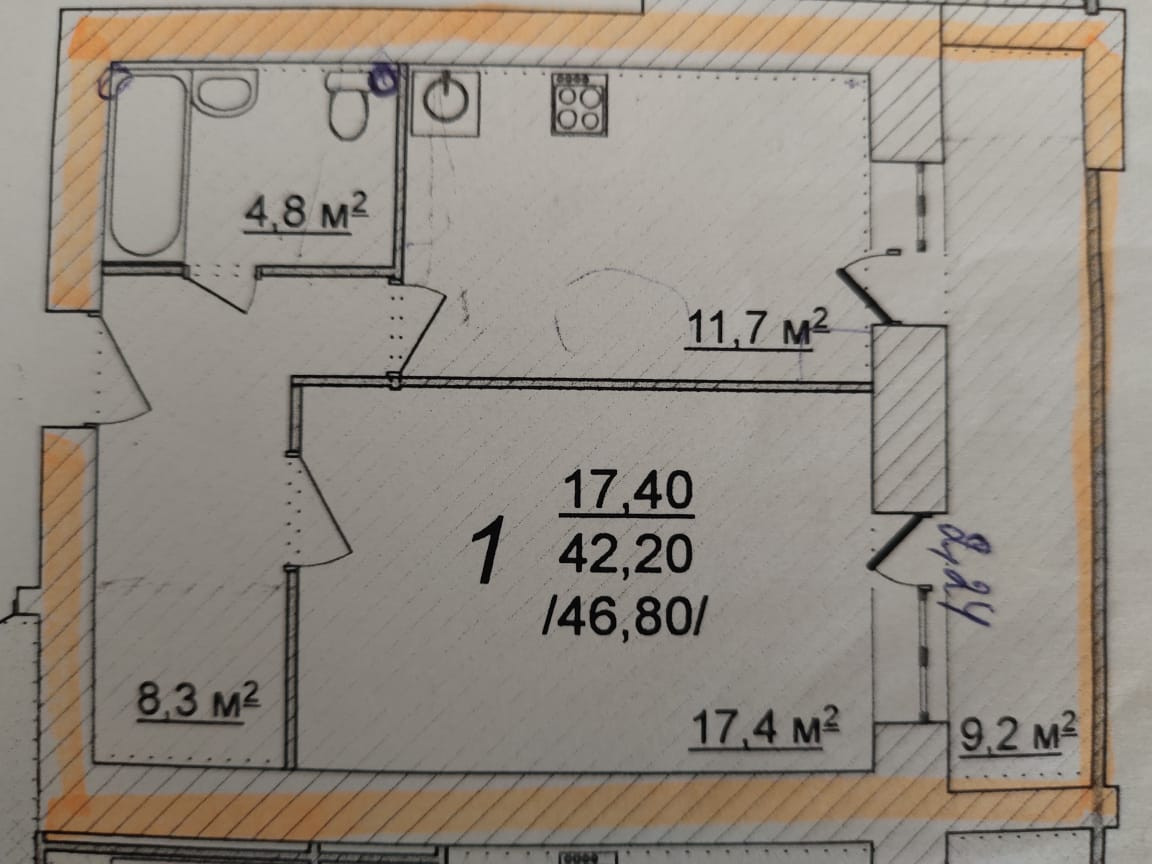 Общая площадь 46.6 м2