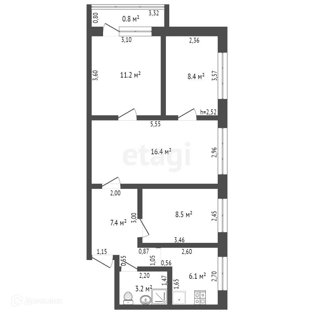 Общая площадь 61.2 м2