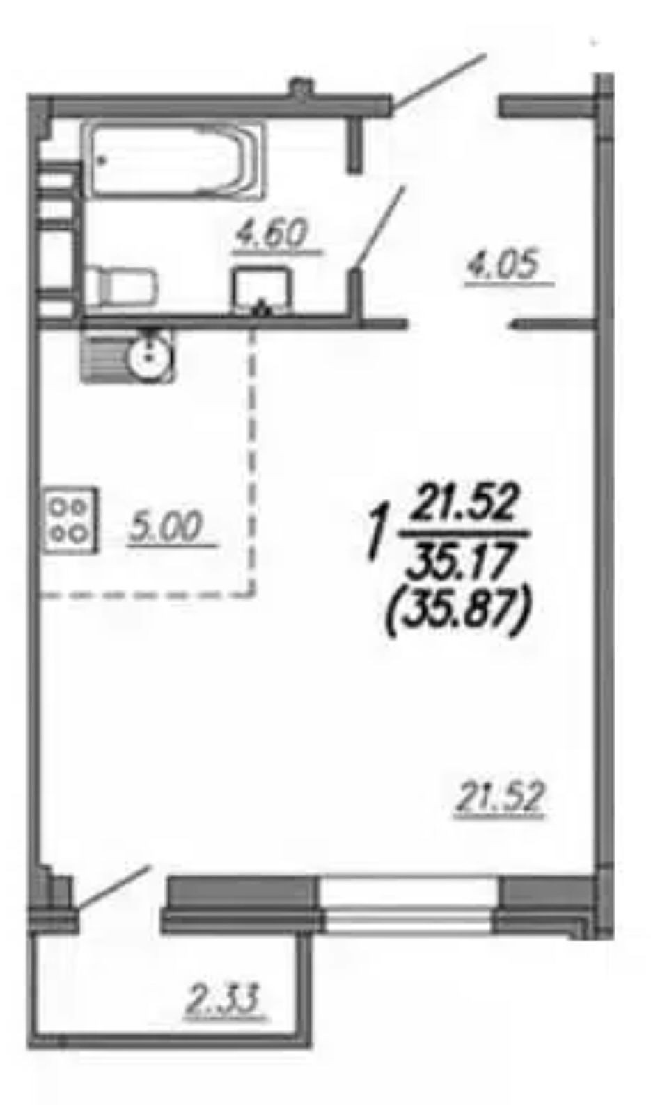 Общая площадь 35.2 м2