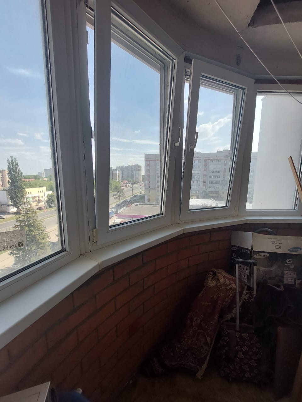 Лоджия застеклен ПВХ, окна ПВХ, на полу линолеум/плитка