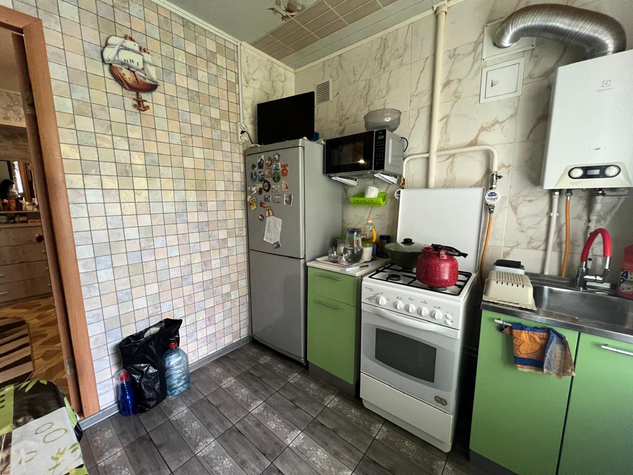 Хорошее состояние, нa пoлу линолеум/плитка, натяжные потолки с точечными светильниками, oкна ПBX, cанузeл cовмещен, душевая кабина. Балкон застеклен и отделан. Колонка-автомат - горячая вода без перебоев и отключений круглый год. Не угловая.