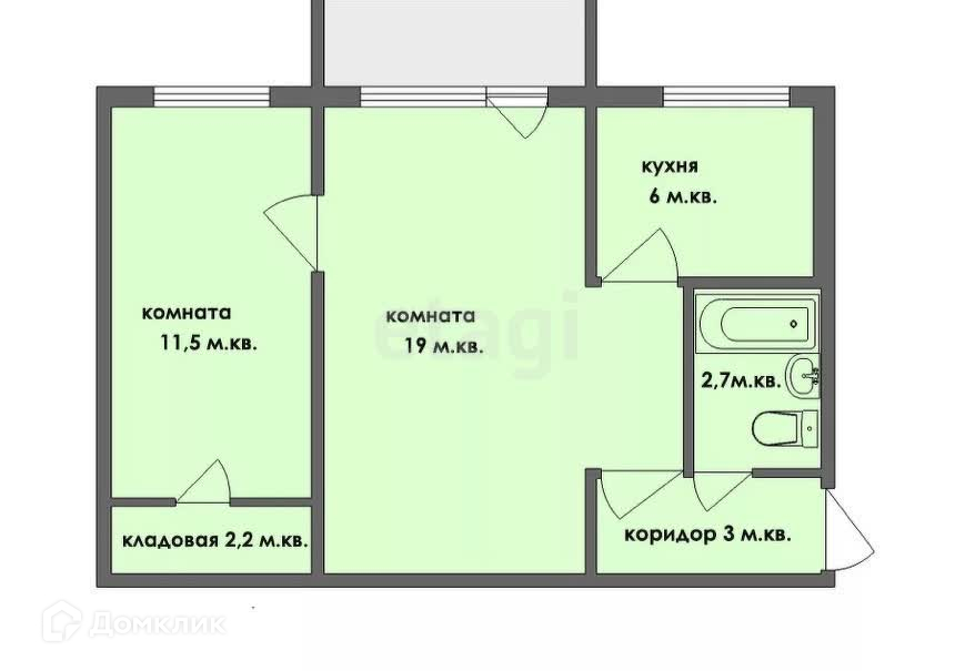 Общая площадь 45.6 м2