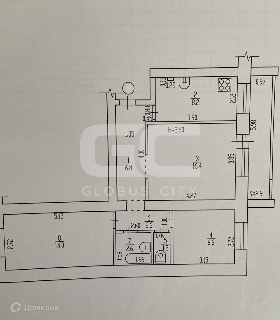 Высота потолков 2.6 м