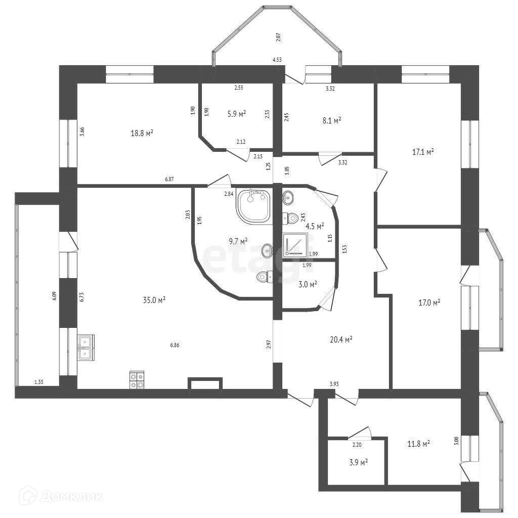 5-комнатная квартира, 160 м2, этаж 9 / 12, на продажу в Брянске, улица Фокина, 115