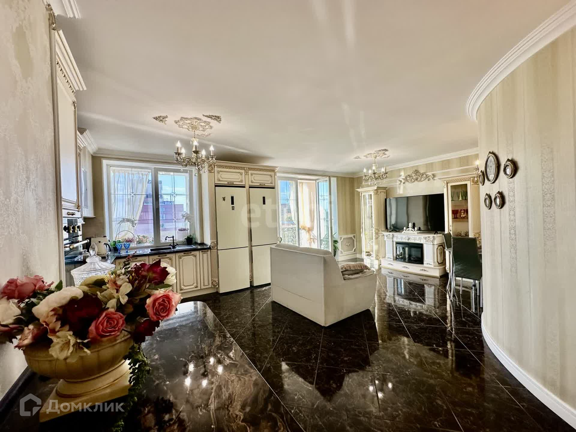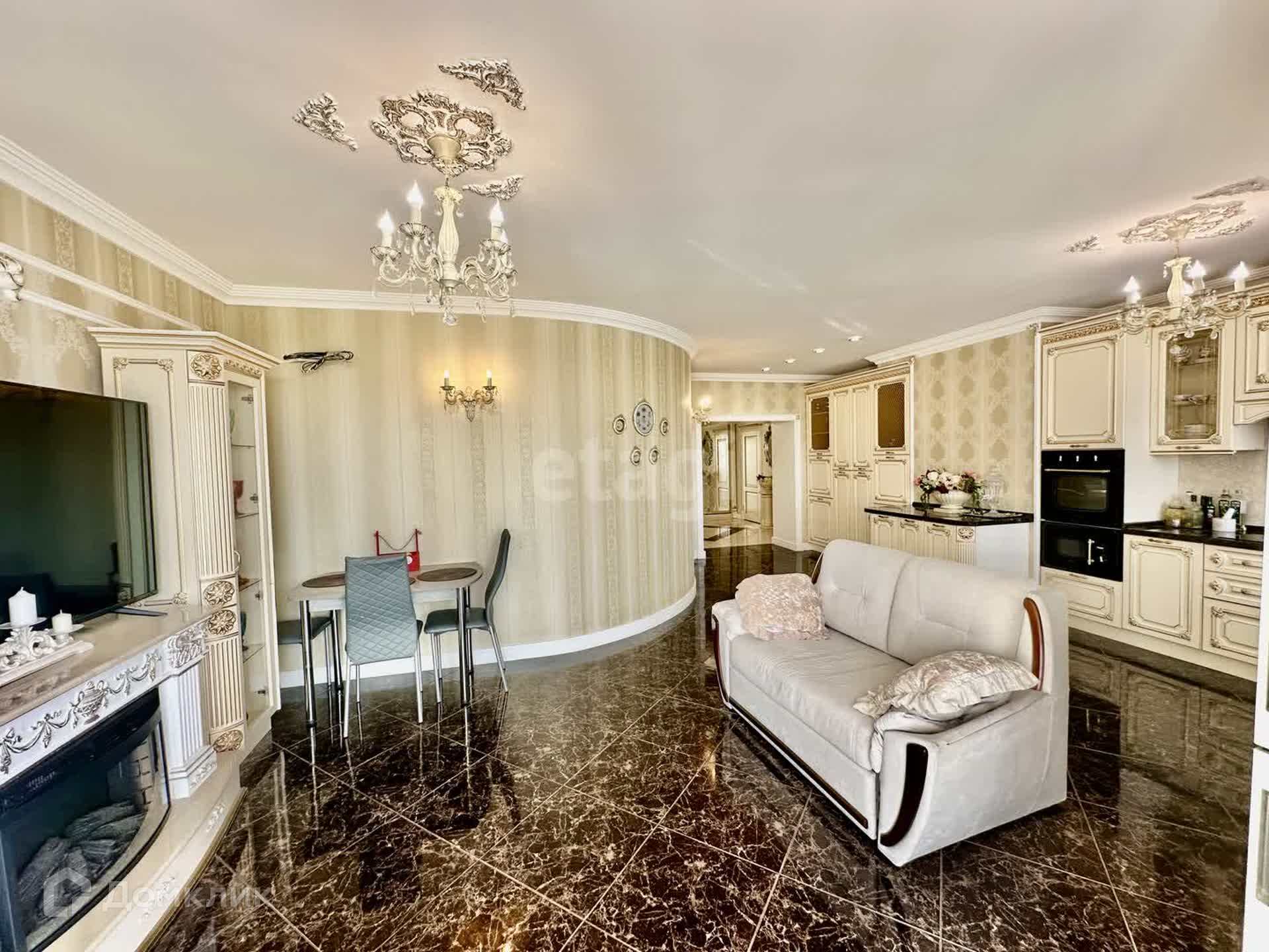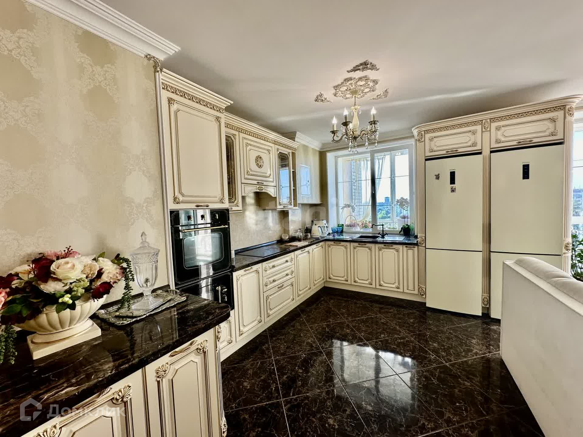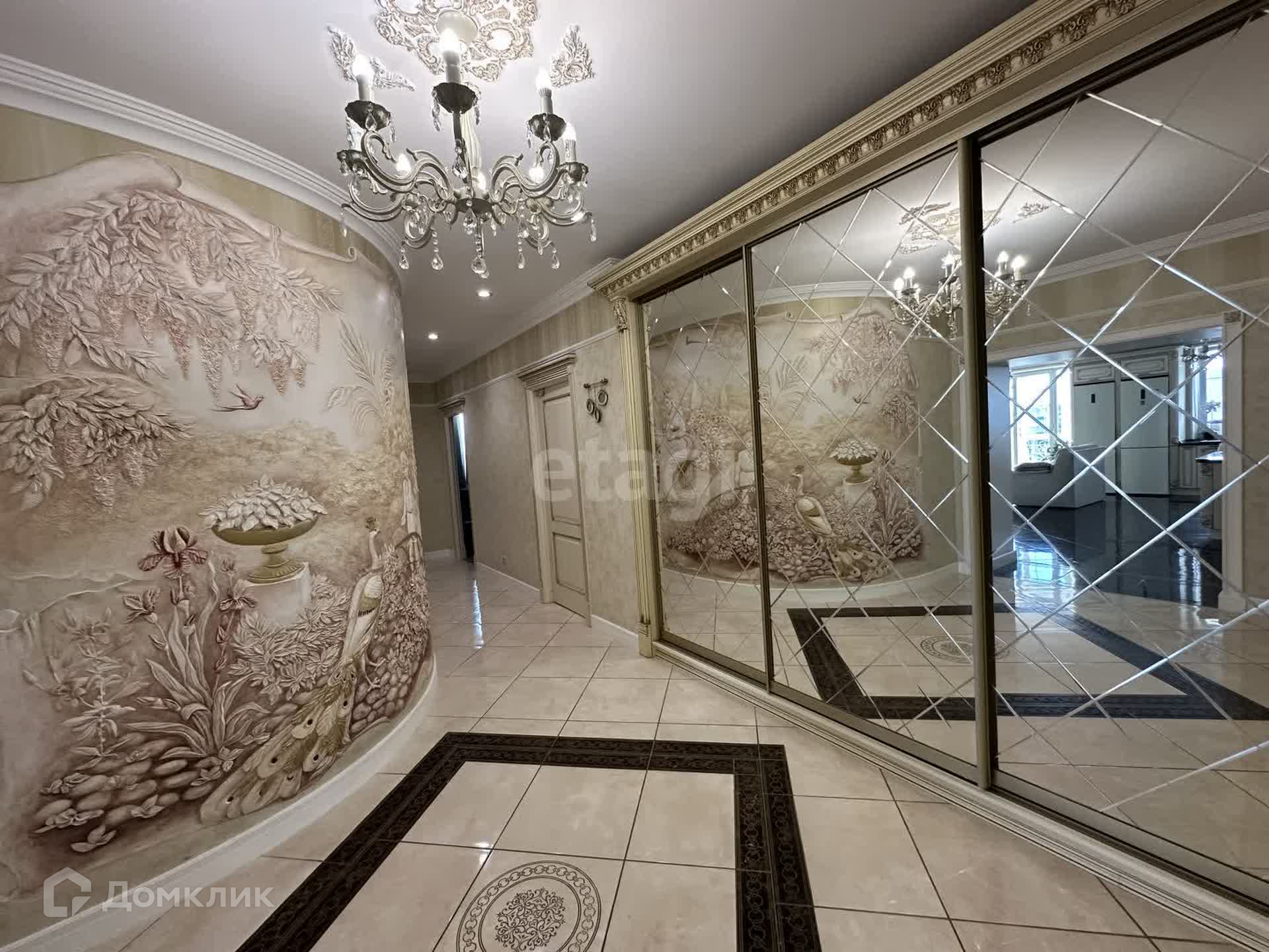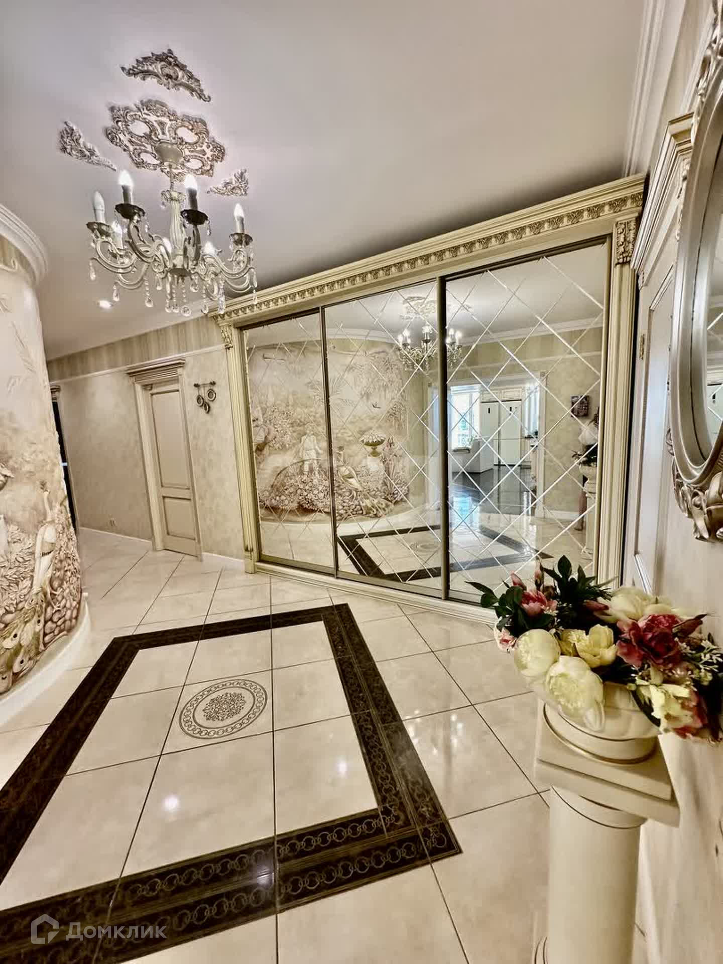 Квартира очень функциональная, все продумано до мелочей: авторские фрески, лепнина, напольное покрытие, мастер-спальня с собственной гардеробной и ванной комнатой, панорамное остекление, множество дизайнерских деталей интерьера!