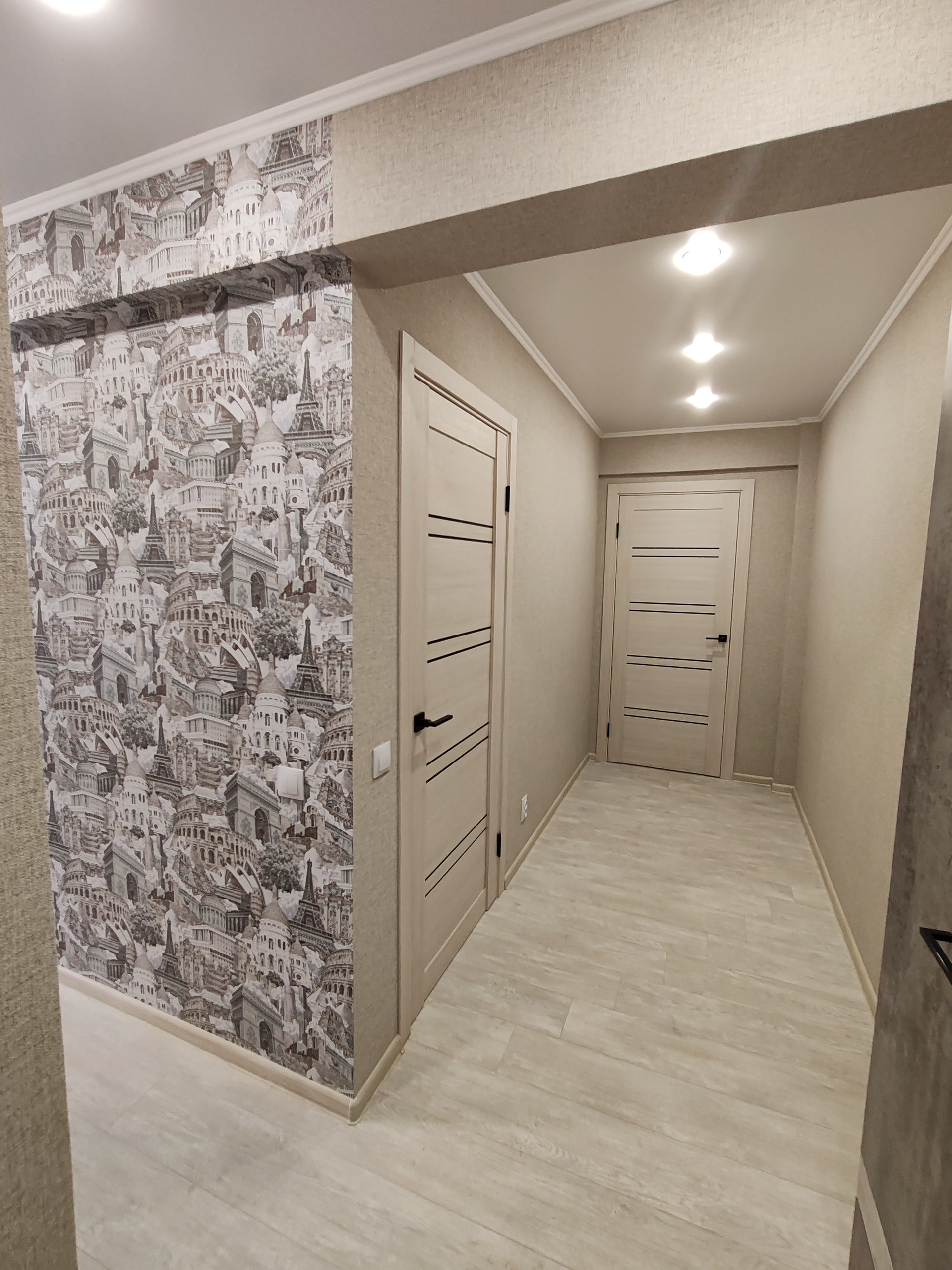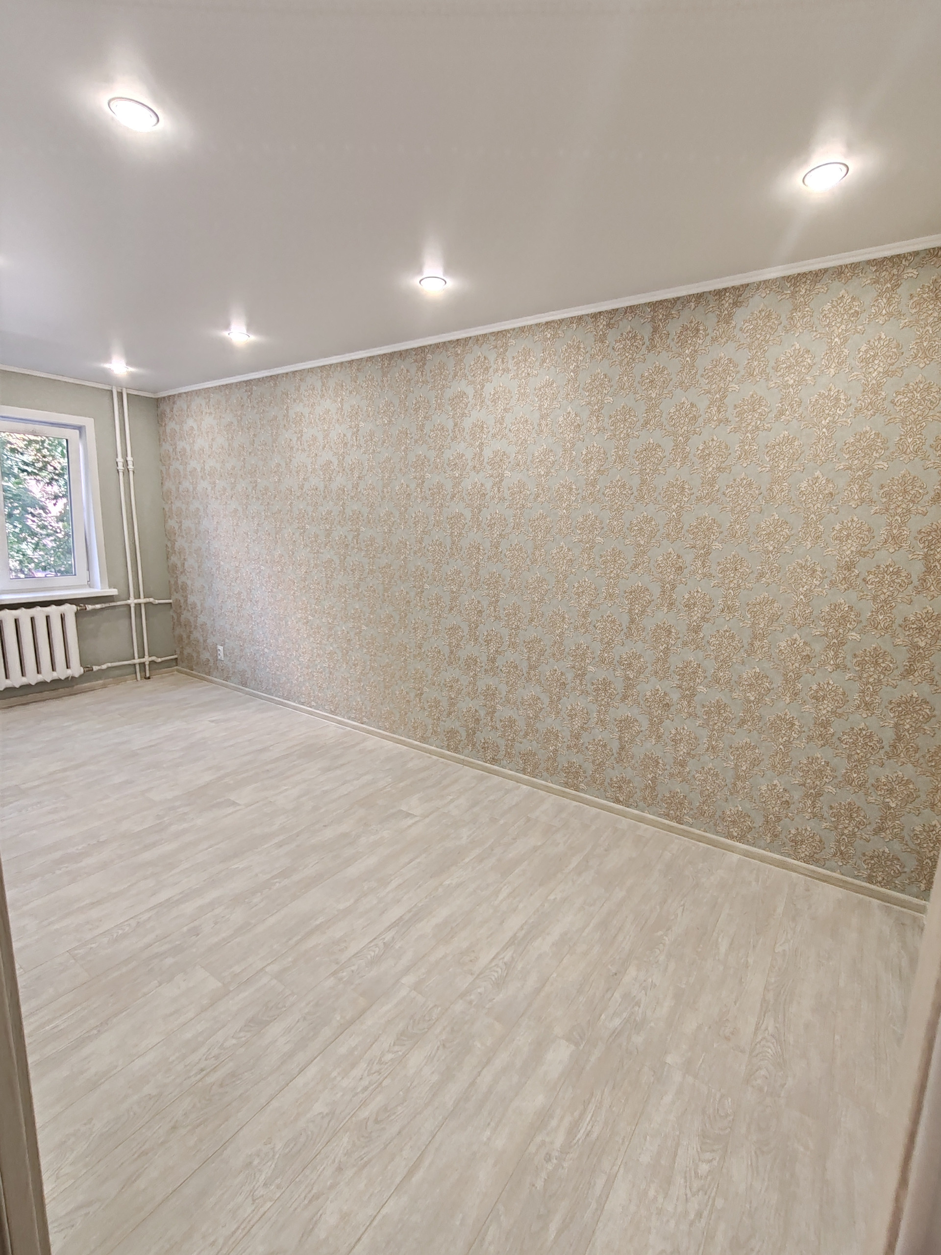 Выполнена стяжка пола по маякам, замена электрики, сантехники, канализационных и водопроводных труб.