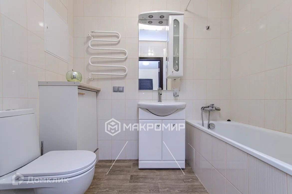 Санузел - в кафеле, просторная кухня 12 метров. Есть глубокая гардеробная для хранения вещей. Большая прихожая. Высокие потолки.