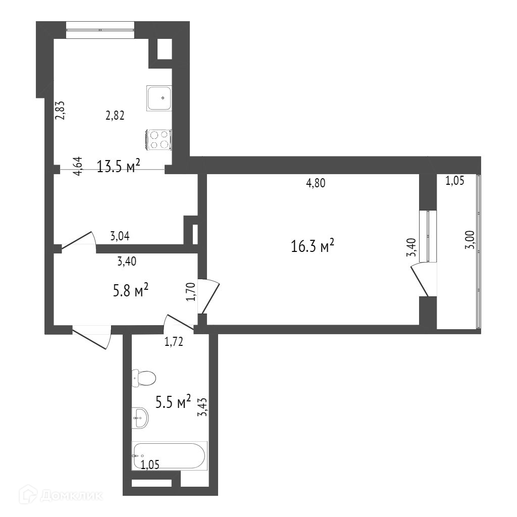 * площадь санузла — 5,5 квадратных метра;