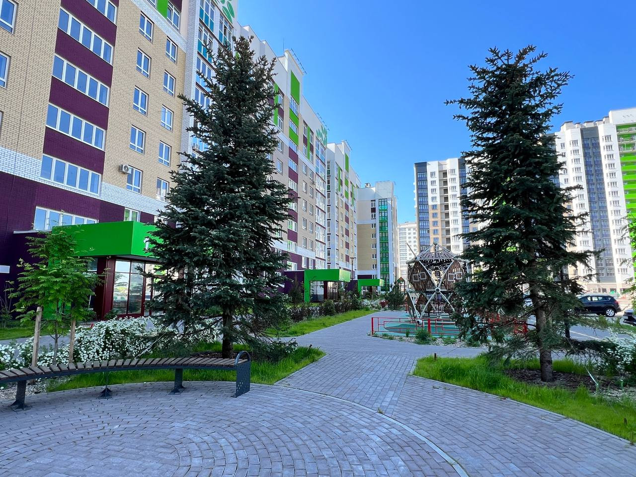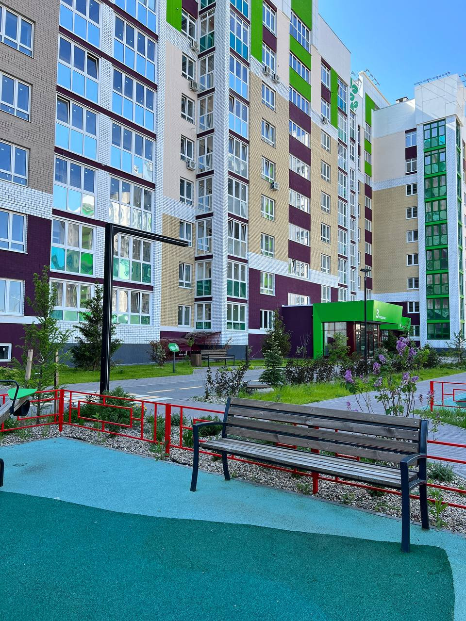 Для молодых семей особенно важно наличие развитой инфраструктуры рядом с домом. В шаговой доступности находятся школа, детский сад, торговый центр, парк и фитнес-центр. Для активного отдыха и занятий спортом во дворе оборудованы детская и спортивная площадки. Также имеется парковка со шлагбаумом, что гарантирует безопасность вашего автомобиля.