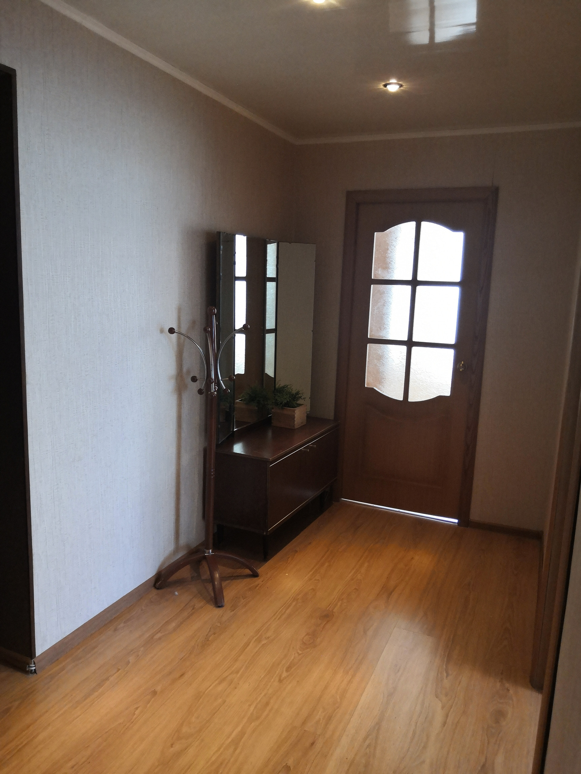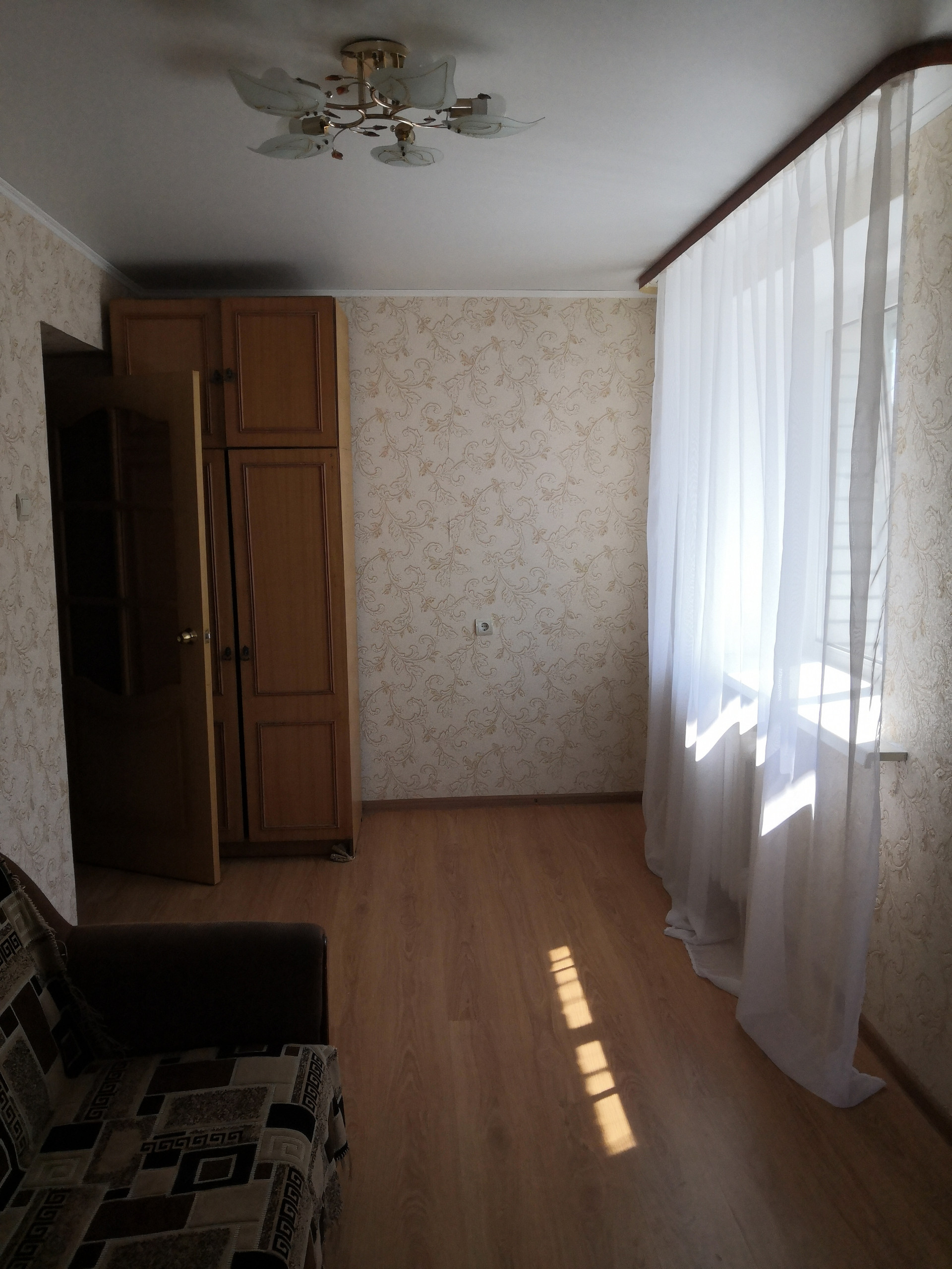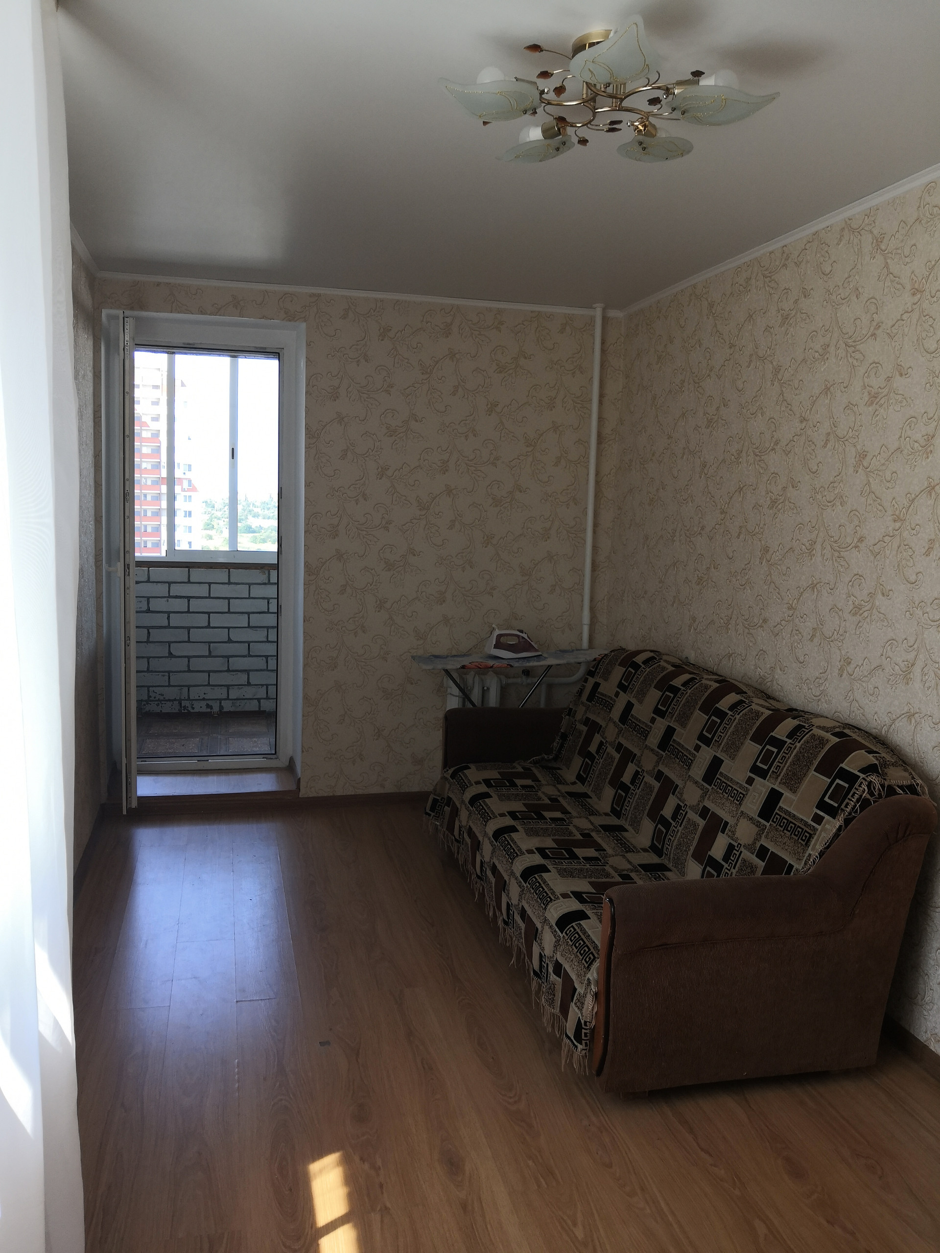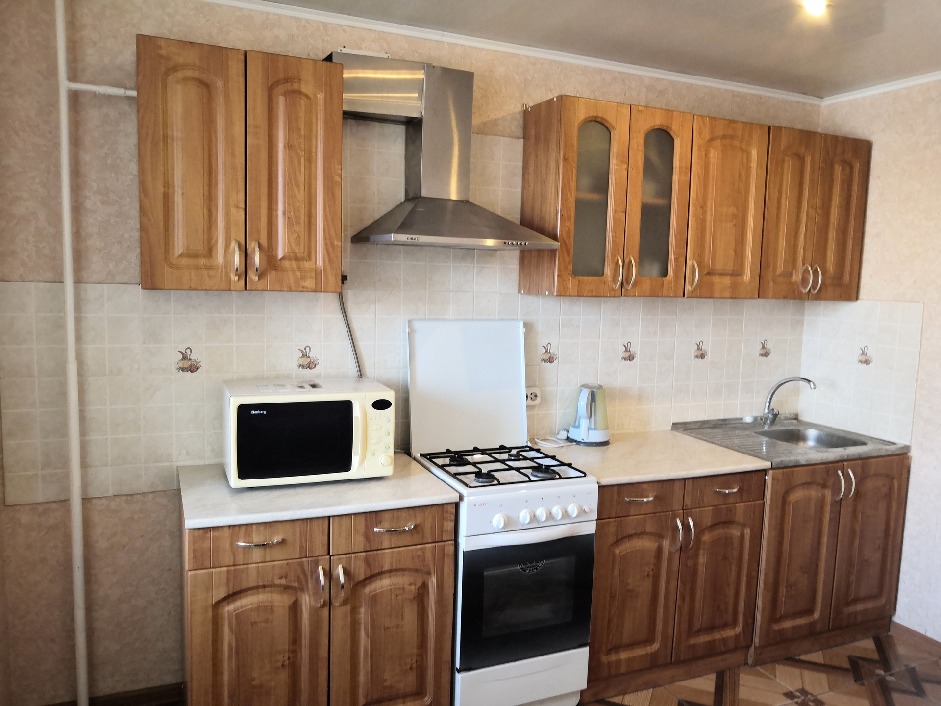 -пол выровнен и уложен ламинат, на кухне- плитка