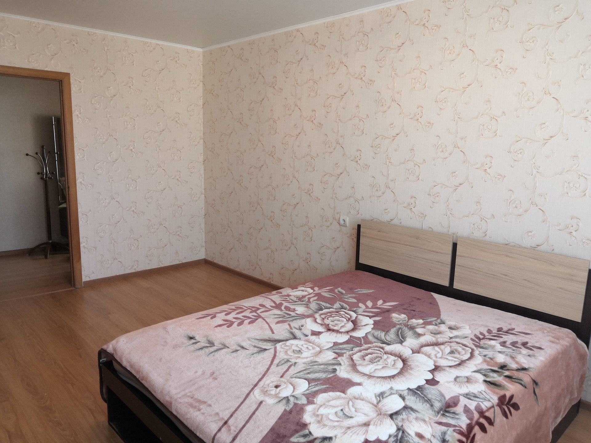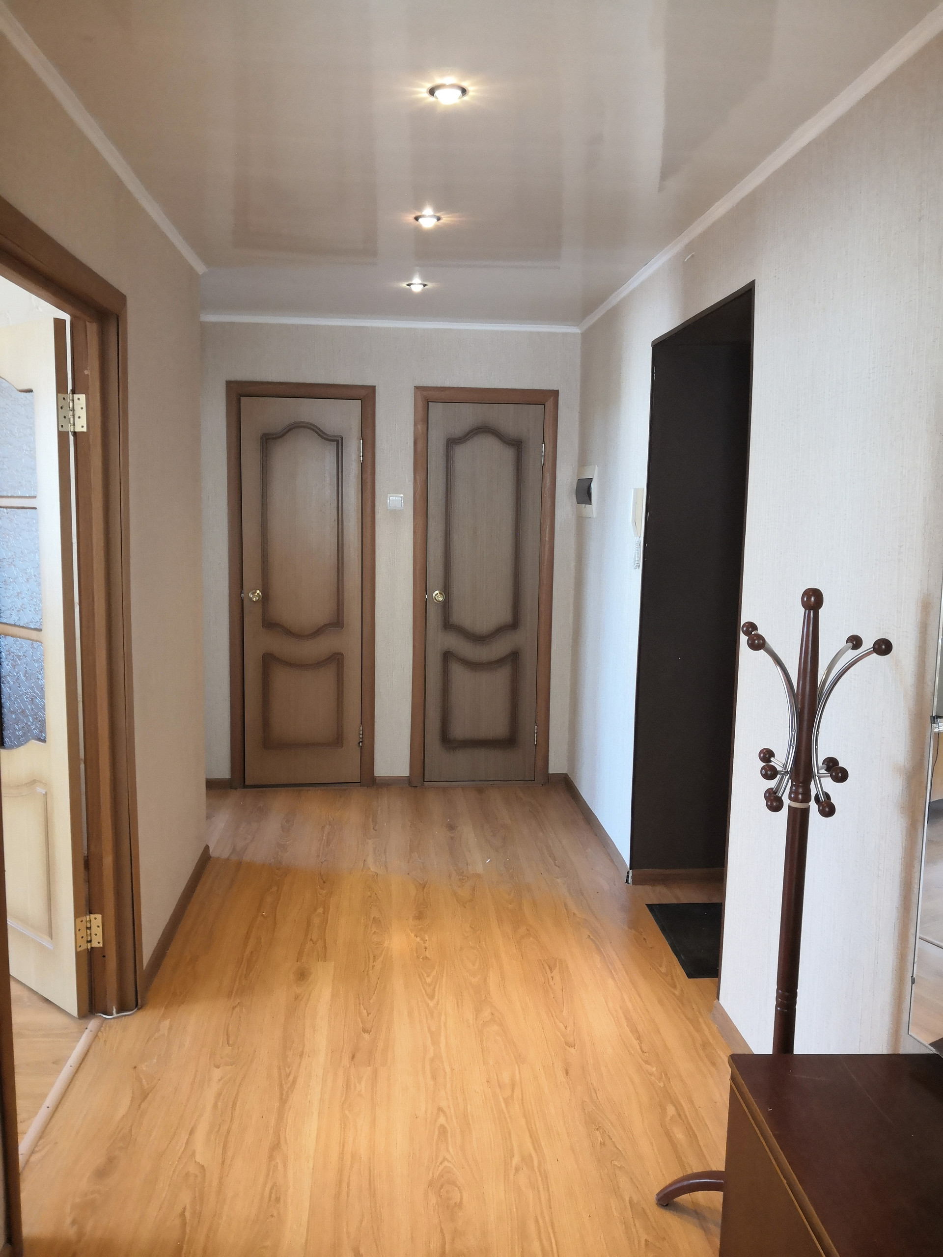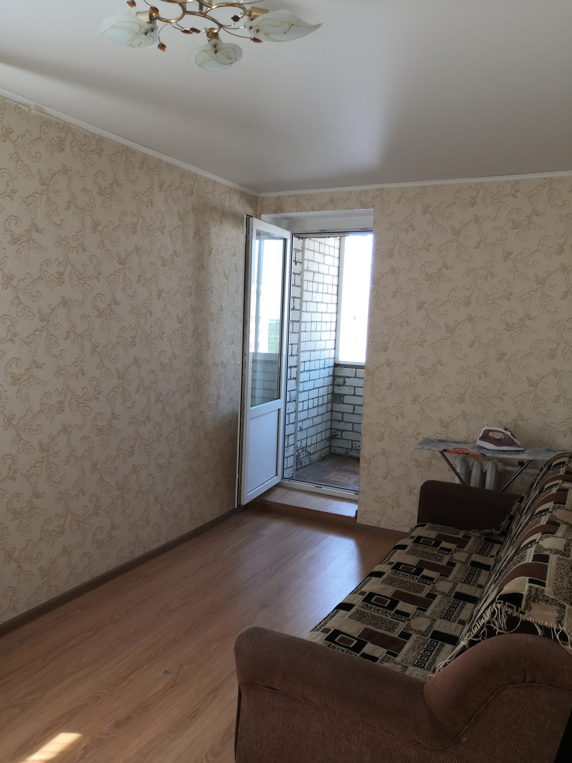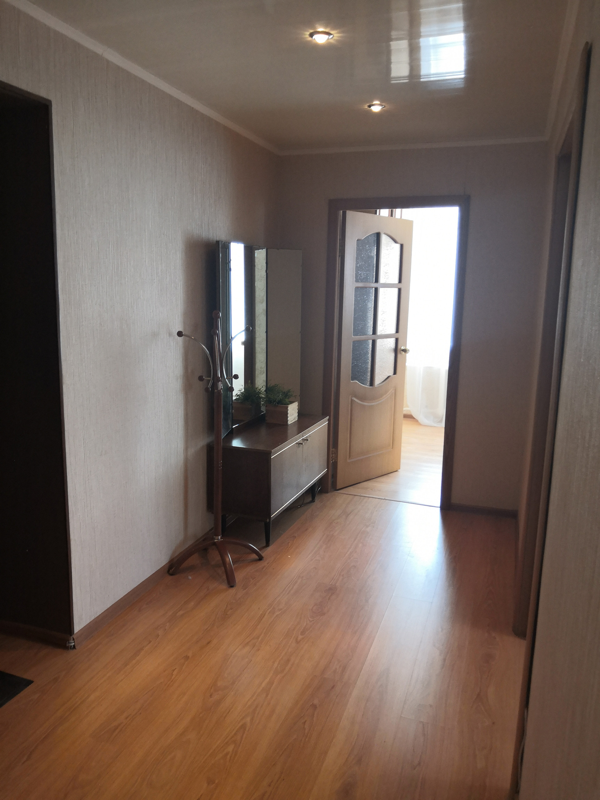 -пол выровнен и уложен ламинат, на кухне- плитка