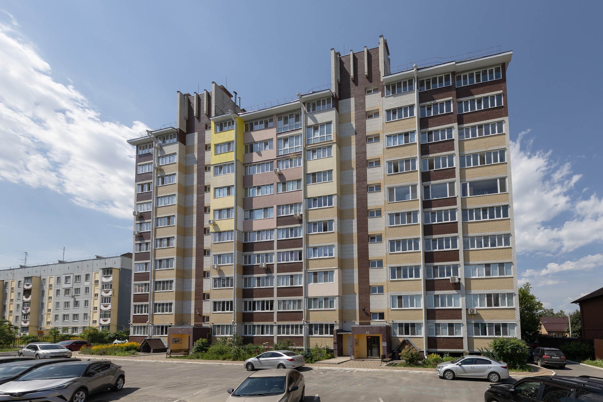 -Благоустроенная придомовая территория с парковочными местами и детской площадкой.