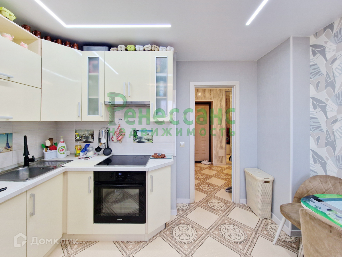 Остается встроенный кухонный гарнитур, частично мебель и бытовая техника.