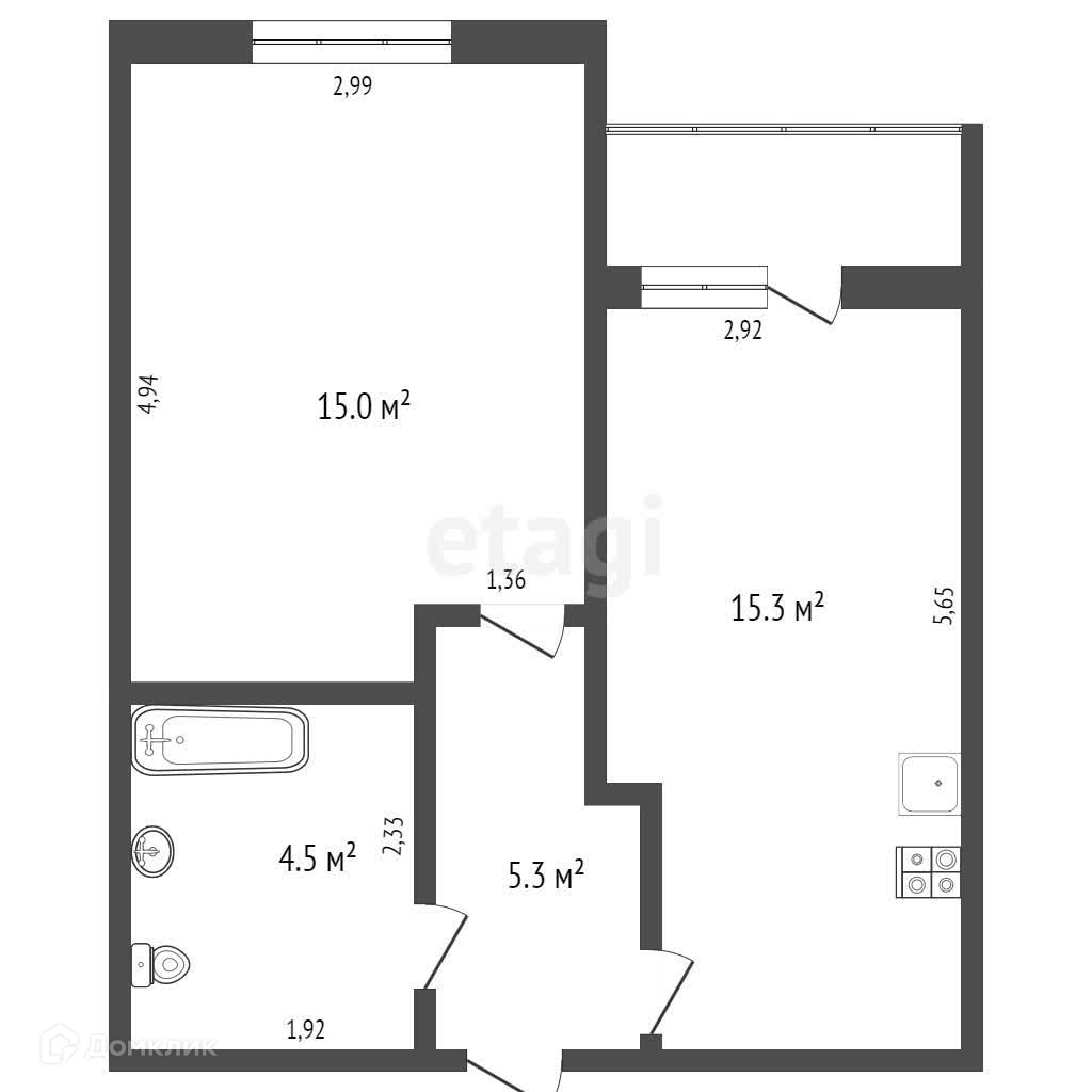 Общая площадь 41.5 м2