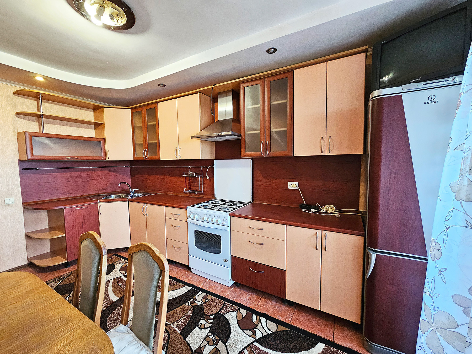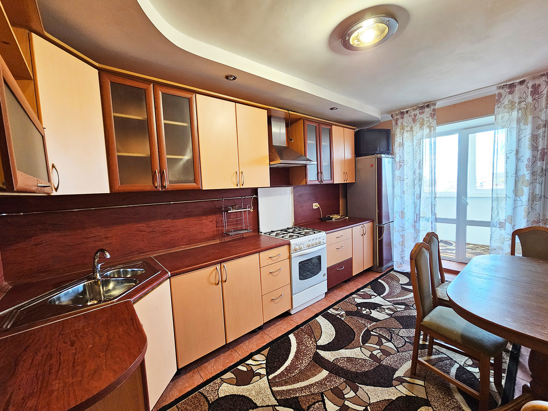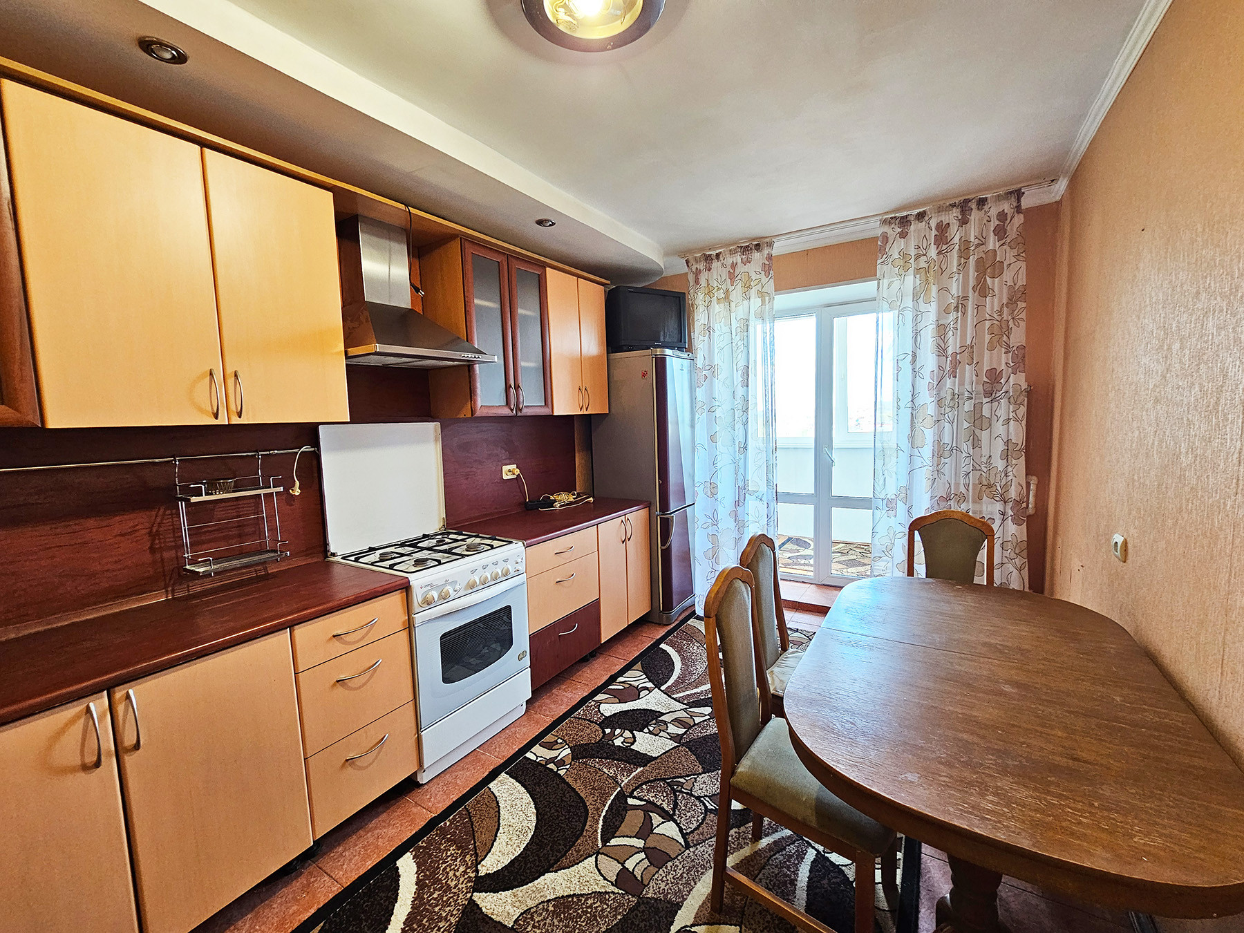 9/10 этаж кирпичного дома 2003 года постройки, удобная планировка, общая площадь 86 / жилая 48 / кухня 13 кв.м., большой холл, комнаты изолированы, квартира неугловая, теплая, ремонт не новый, на полу линолеум, стены ровные, двери из натурального дерева, большой встроенный шкаф в прихожей, зал 24,2 кв.м., спальни 12 и 11,8 кв.м., с/у раздельный, выложен плиткой, горячая вода, встроенная кухня 13 м2 с техникой, большая лоджия с двумя выходами (кухни и спальни) и отличным видом, личная (узаконенная) кладовка на этаже, лифт, хорошие соседи, квартира свободна, чистая продажа, оперативный показ, помощь с ипотекой, любые формы оплаты.