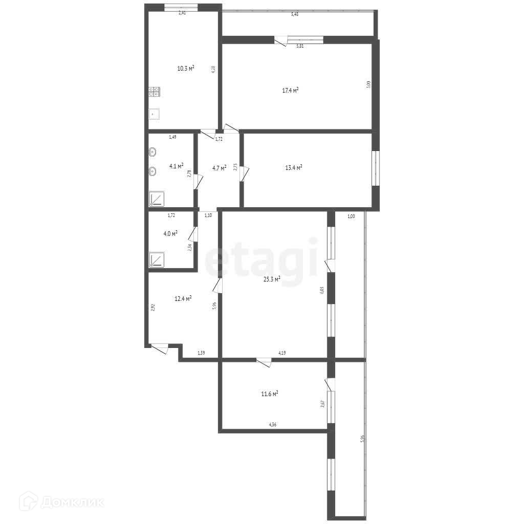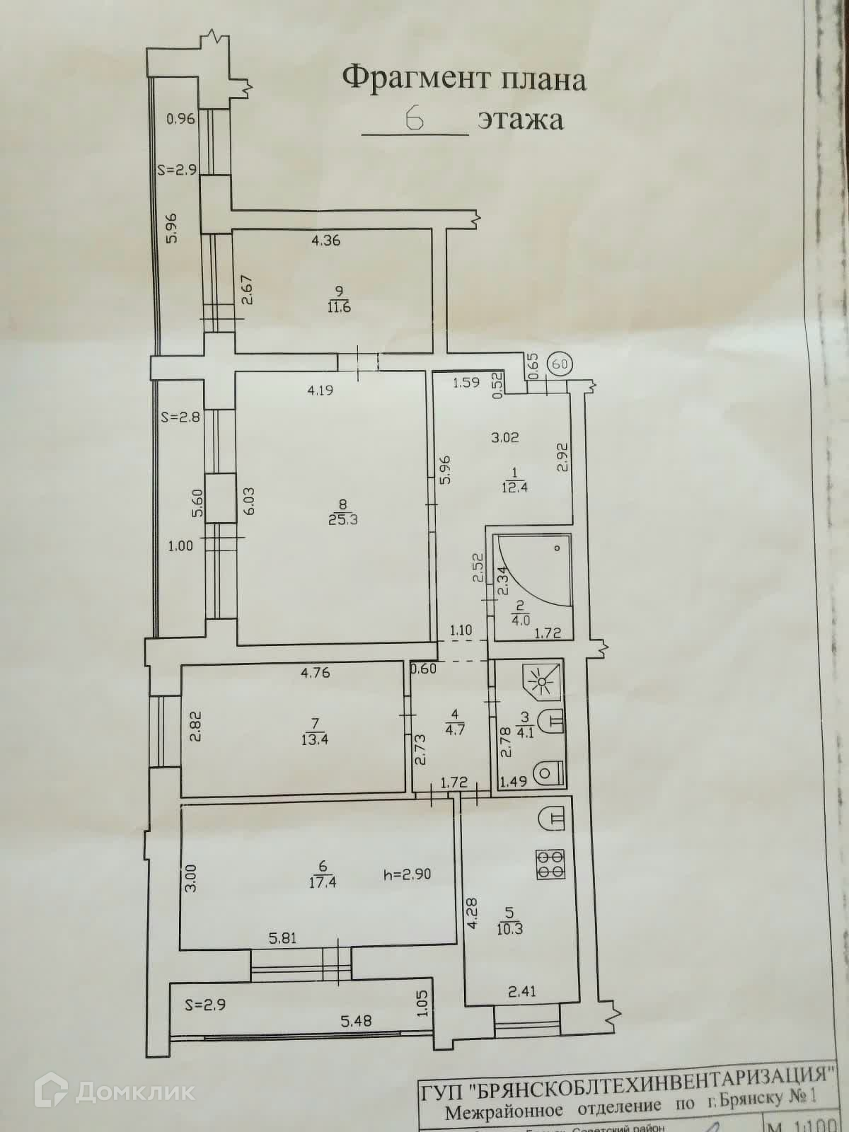 4-комнатная квартира, 103.2 м2, этаж 6 / 6, на продажу в Брянске, Бежицкая улица, 1/1