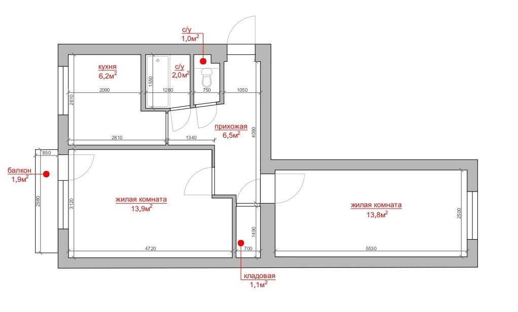 Санузел 1 раздельный