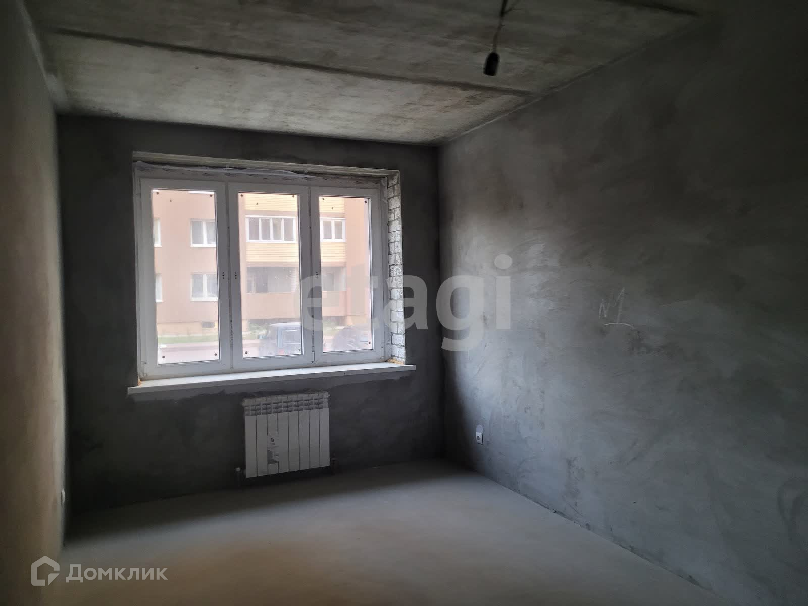 Улучшенная черновая отделка: заштукатурены стены, залиты полы, разведена эл. проводка.