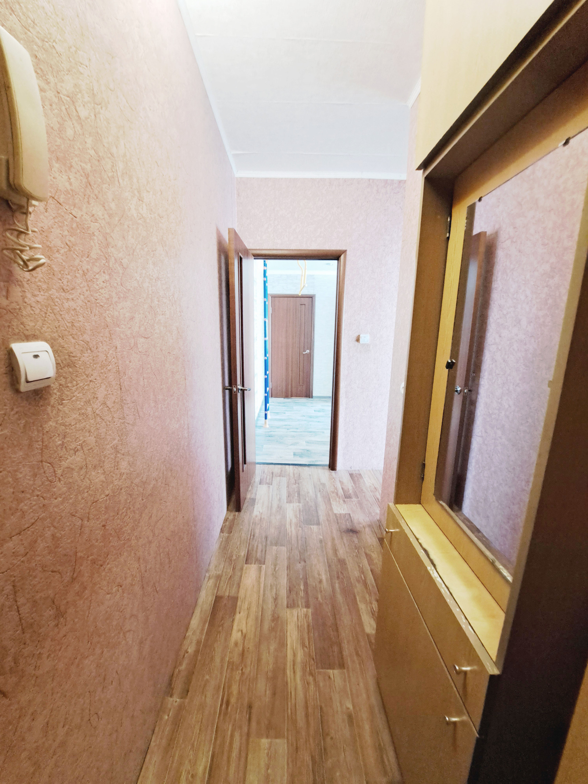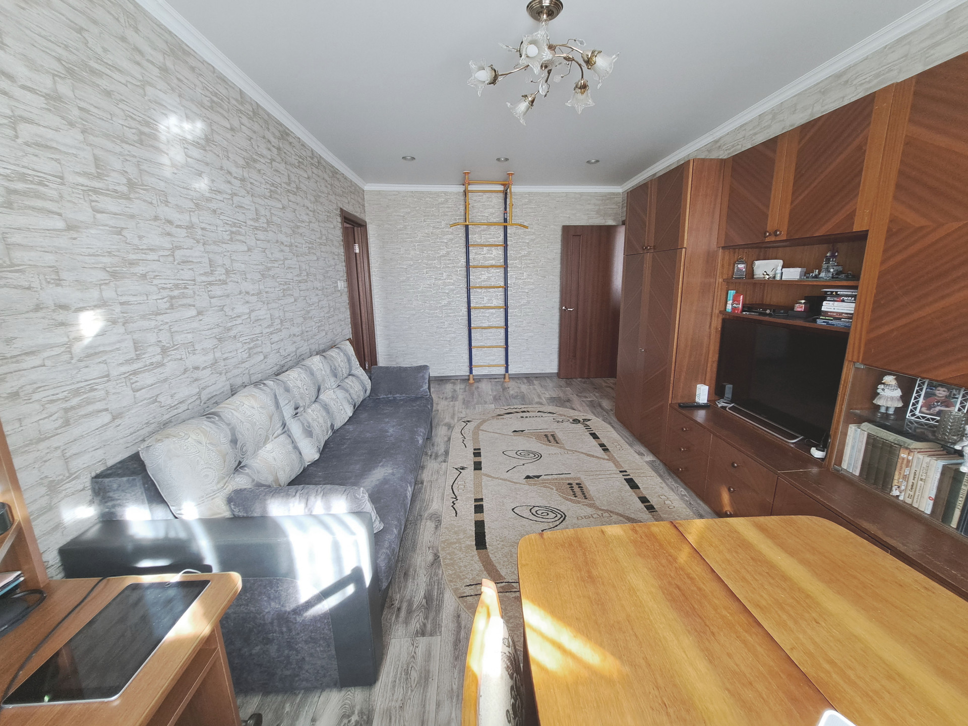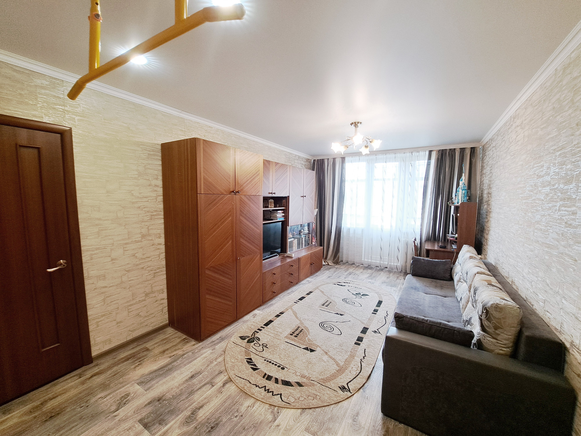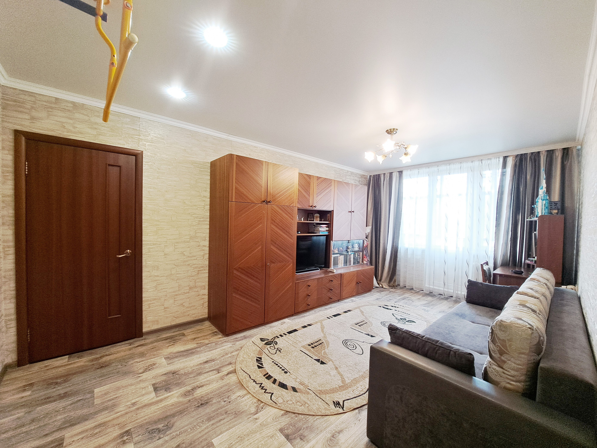 Выполнен качественный ремонт: заменена проводка, стеклопакеты, выровнены стены, в санузле и на кухне современный кафель, полотенцесушитель работает от горячей воды, установлены счетчики, в большой комнате натяжной потолок, балкон застеклен. Не угловая.